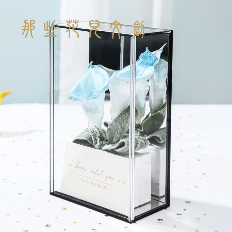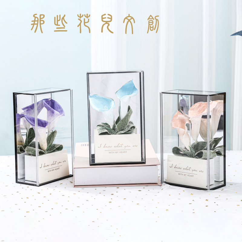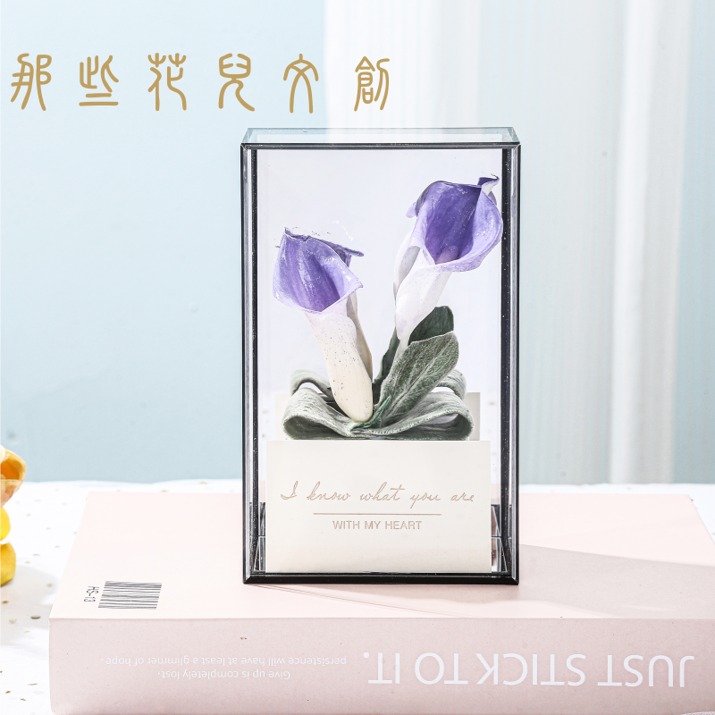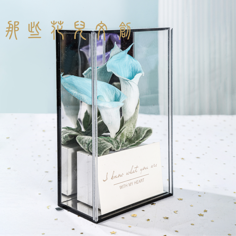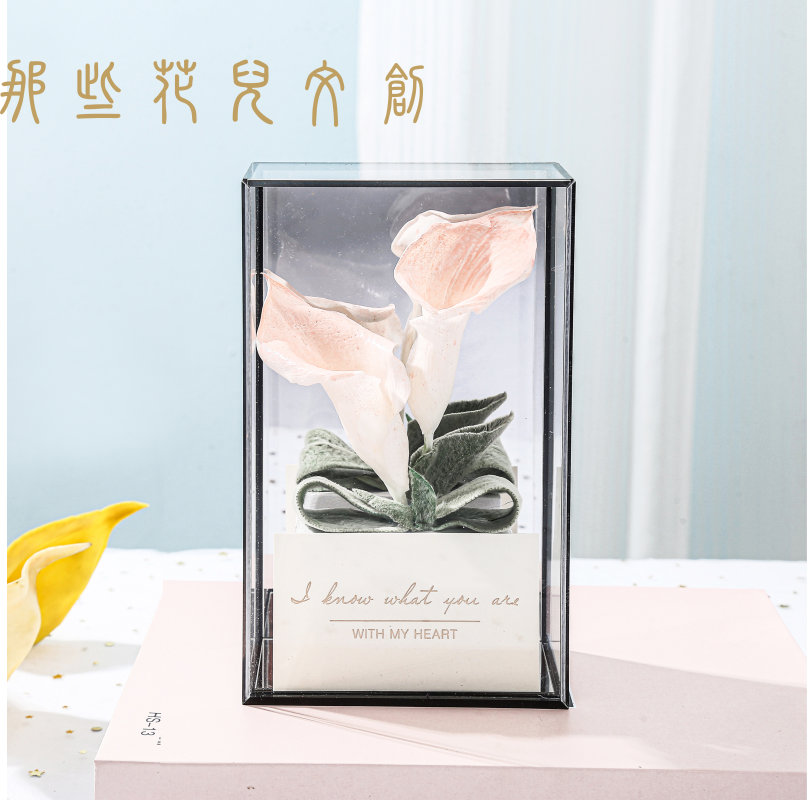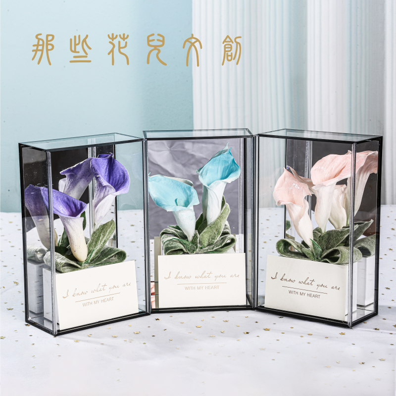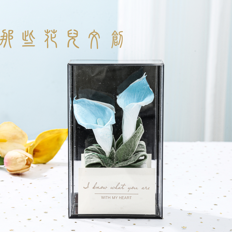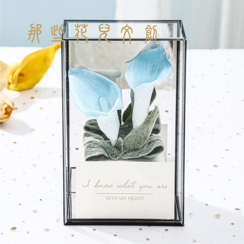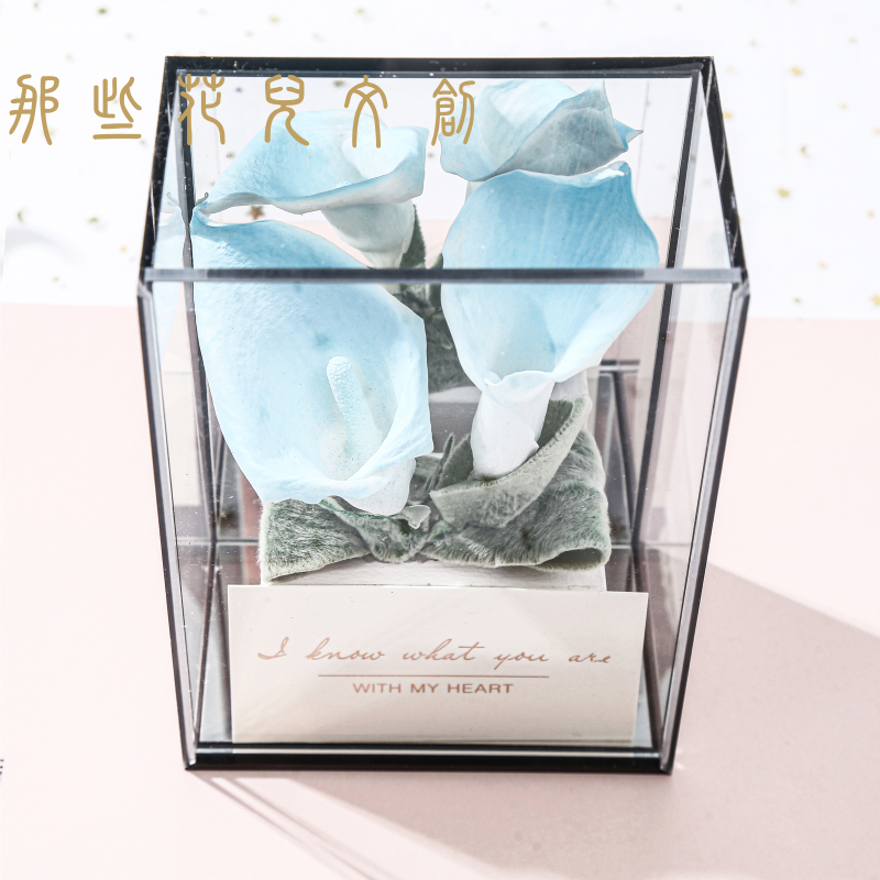 Long Lasting Immortal Real Preserved Flowers Calla Lily In Square Clear Acrylic Mirror Box Good Gift For Birthday/Wedding Guests