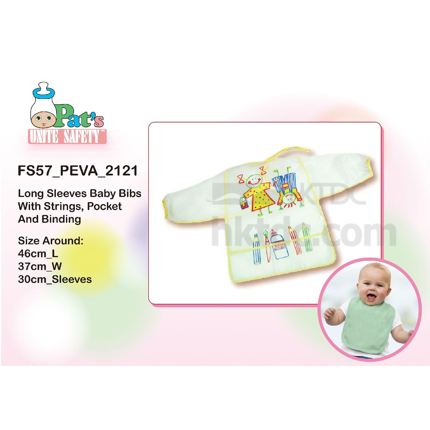 An essential for newborns and toddlers, this long-sleeve baby bib is crafted from 100% PEVA with solid binding on shoulders, cuffs and hem to add structure. Its illustration-like printing in front further prompts a lighthearted sense of style.