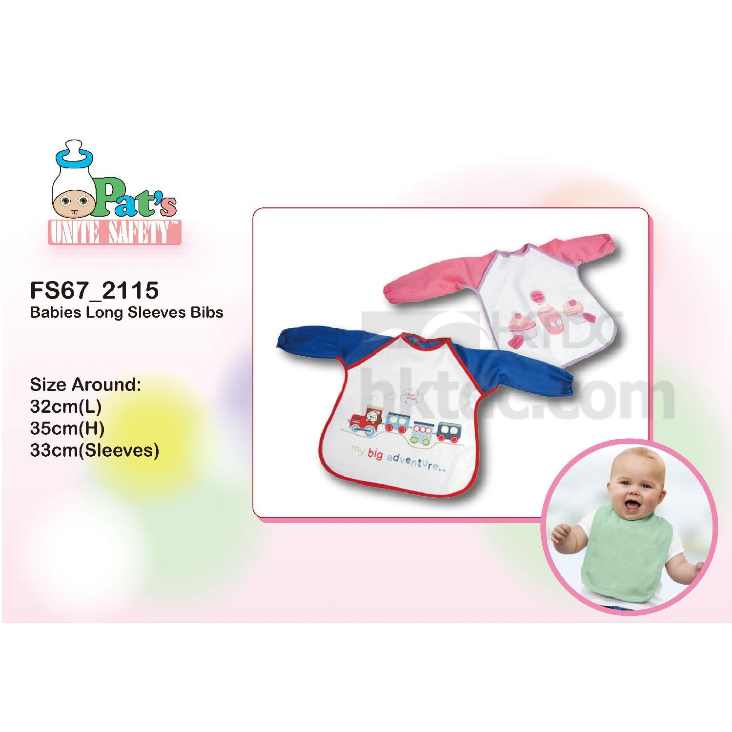 Cute and easy-to-clean, this long-sleeve baby bib fastens neatly at the back, featuring a trimmed cotton-polyester front of round neck finish with colorful prints. Its ribbed cuff design further pledges comfortable wear and style.