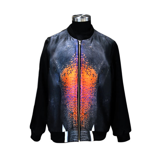 This is a men’s jacket with a round neckline, a zip closure and long sleeves. It is made of quality dupioni silk and sateen to ensure wearing comfort. This long-sleeved jacket comes with colorful prints on the front for a touch of style.