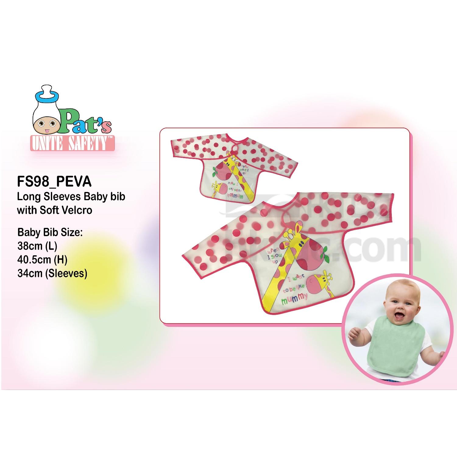 Keep a suitable with this long-sleeve baby bib on your baby one at feeding time. Made of 100% PEVA of T/C binding, the trimmed bodice showcases colorful patterns and prints to captivate eyes.