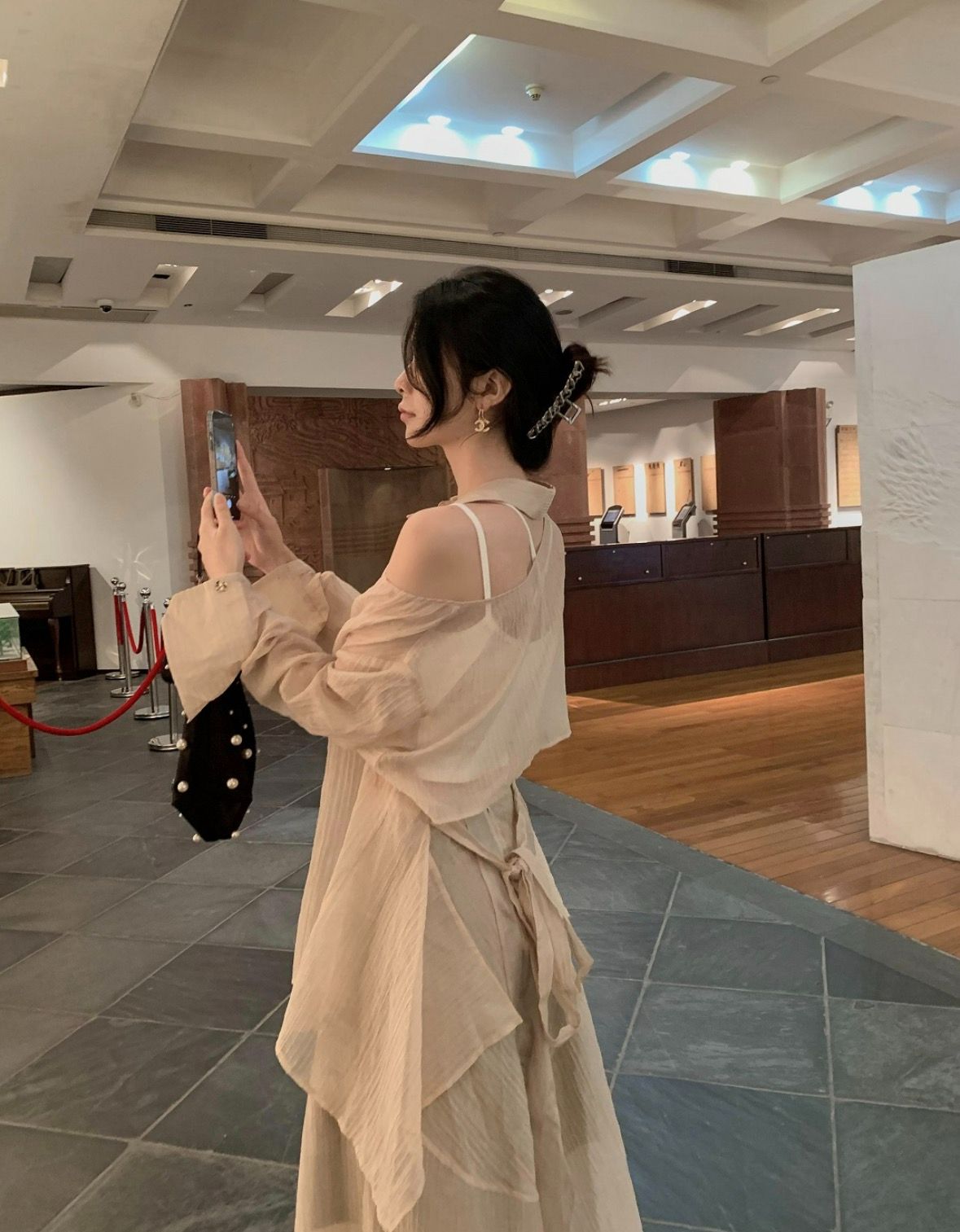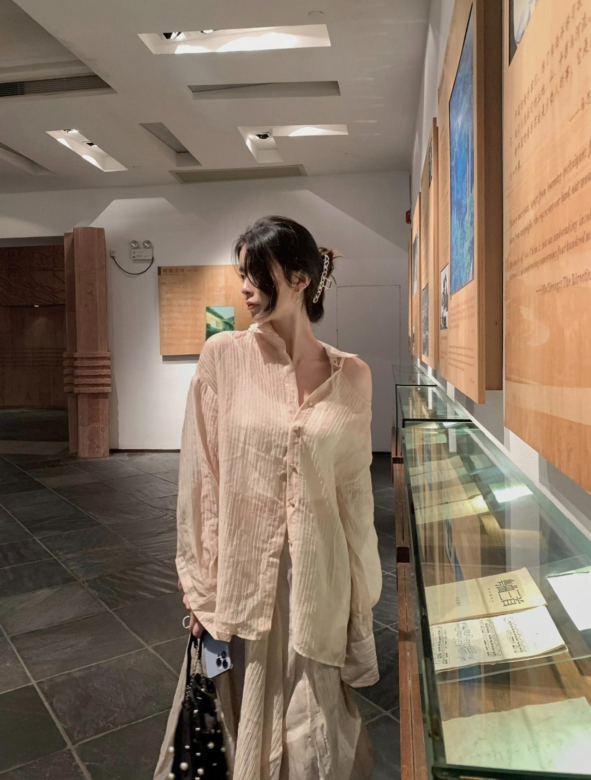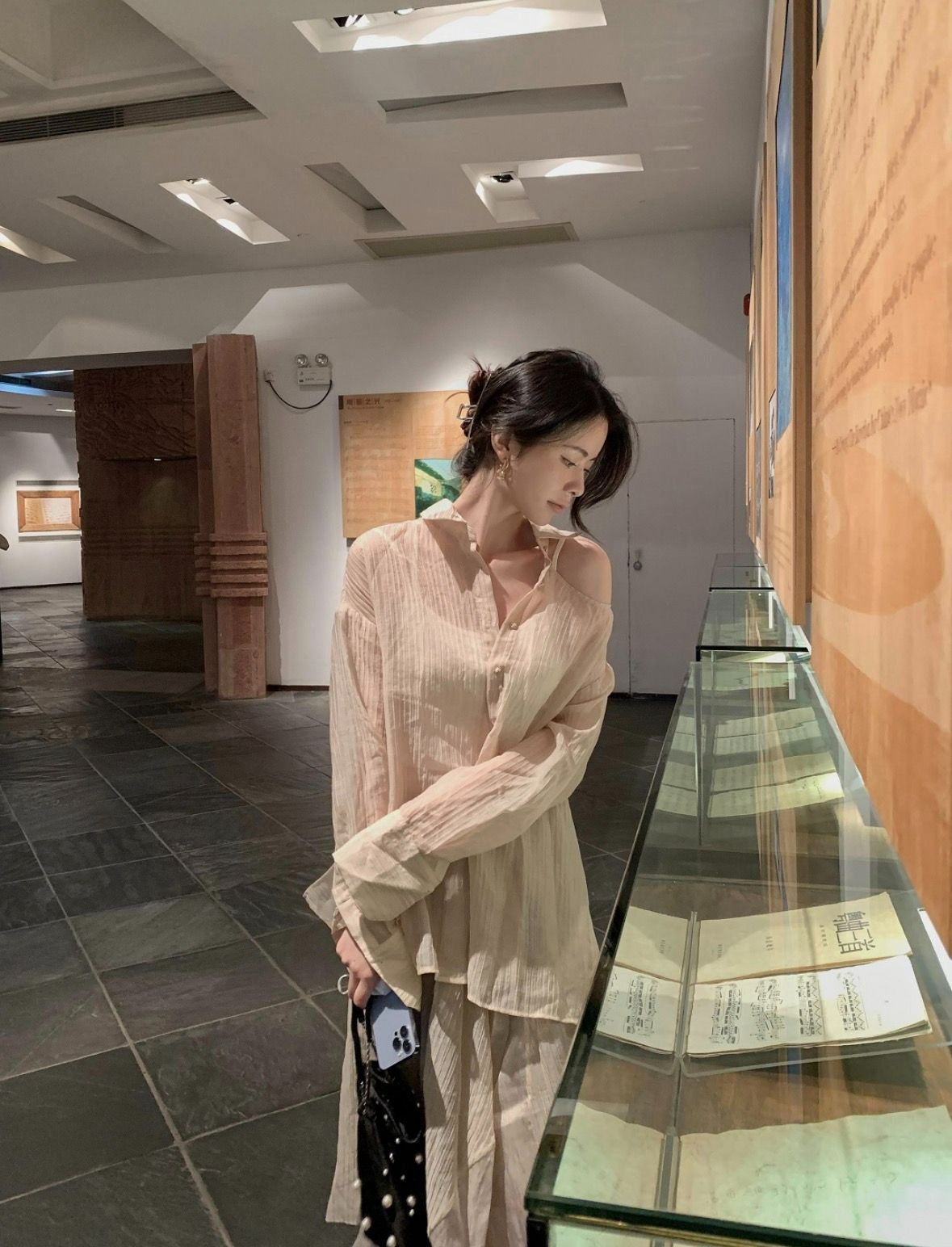 Continuing the series of handmade tea dyeing genes, high count shirt fabrics are hand dyed with natural tea soup, presenting a unique light honey tea soft and crispy texture. Splicing together soft mist lace details, blending the relaxation of tea dyeing with the softness of lace, creating a unique "light desire atmosphere" for the series, accurately targeting customers who pursue niche relaxation aesthetics.