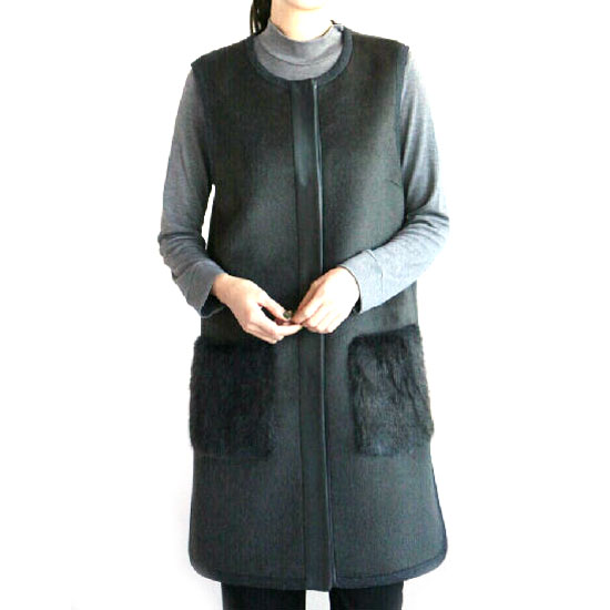 This sleeveless coat goes flawlessly with a turtle-neck pullover and a pair of leggings. The faux fur pockets on the front render an elegant touch to the coat. Made with quality material, this coat keeps you warm while promising great breathability.