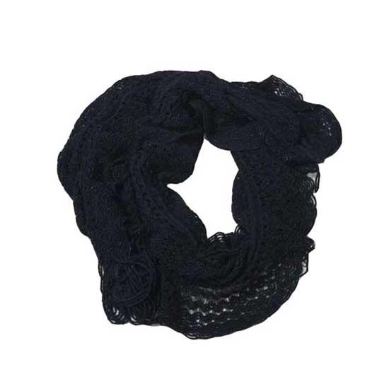 This black loop scarf is an elegant and effortless addition to your overall look. The simplistic design looks great with many types of garments. The delicate texture of this accessory delights many ladies.