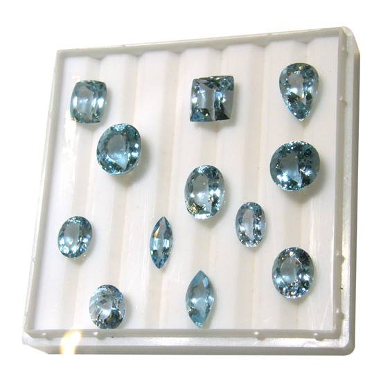This 12 pieces of loose aquamarine are in different shapes, sizes and weights. Shapes include pear, round, oval, princes, cushion and marquise. They could be the ideal substitutes of diamonds with affordable price.