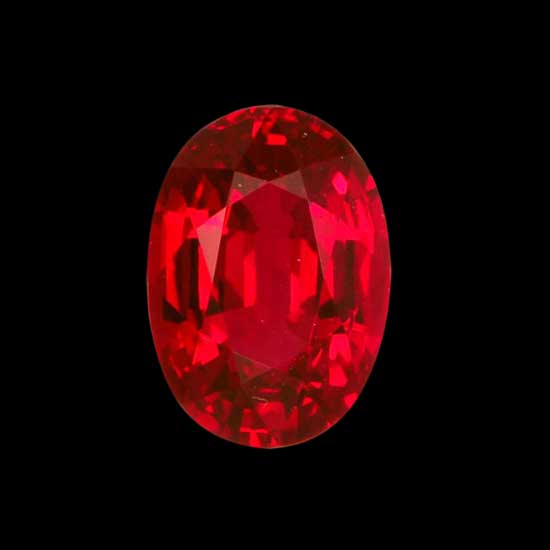 Showcased is a precious Burmese ruby in an enticing pigeon’s blood color. The gem is cut into an oval shape with delicate facets to show enhanced beauty. The gorgeous ruby brings extra glamor to high-end jewelries.