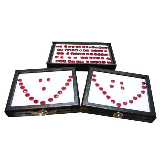 The featured items are loose ruby stones in mixed cuts. The stones comes in different sets, each classified according to their cuts. They are ideal for making matching jewellery sets.