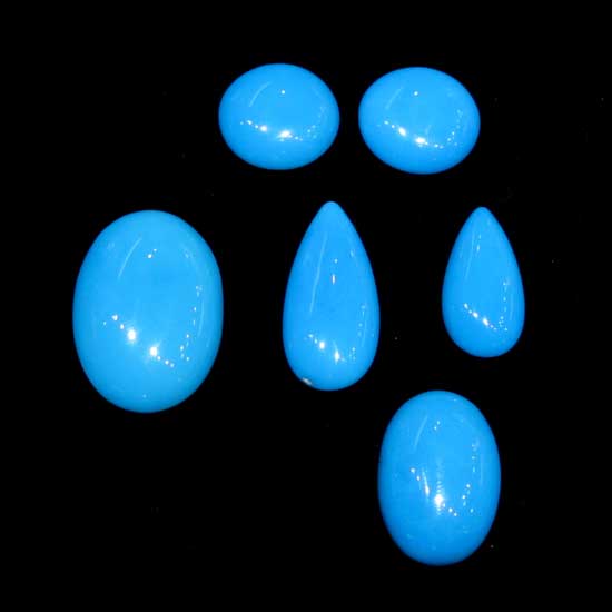 Outlined are six pieces of loose turquoise gemstones in attractive sky blue color. Those shining stones uniquely come in teardrop, oval and round shapes respectively. Featuring excellent shine and high luster, the turquoise stones are surely elegant and brilliant to make jewelry pieces.