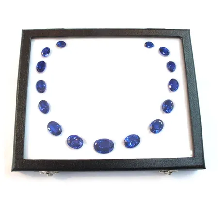 Featured here is a set of oval faceted blue tanzanite stones. This necklace set can be crafted into a charming graduated necklace. The intense oceanic blue gemstones exemplifies fine craftsmanship and the beauty of nature.