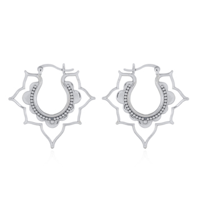 Lotus Wire Layered Out Silver Hoop Earrings
