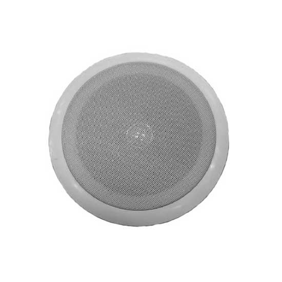 This is a loud speaker that comes in a neat round shape. The allover light gray hue showcases a simple yet elegant look. It is designed to deliver excellent sound quality with high fidelity.