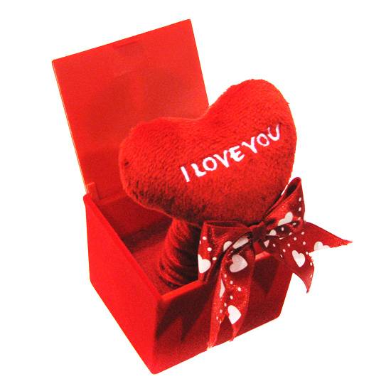 This product is called "love in a box". There is a heart shaped doll with wordings of "I love you". There is also red ribbons attached to the heart.