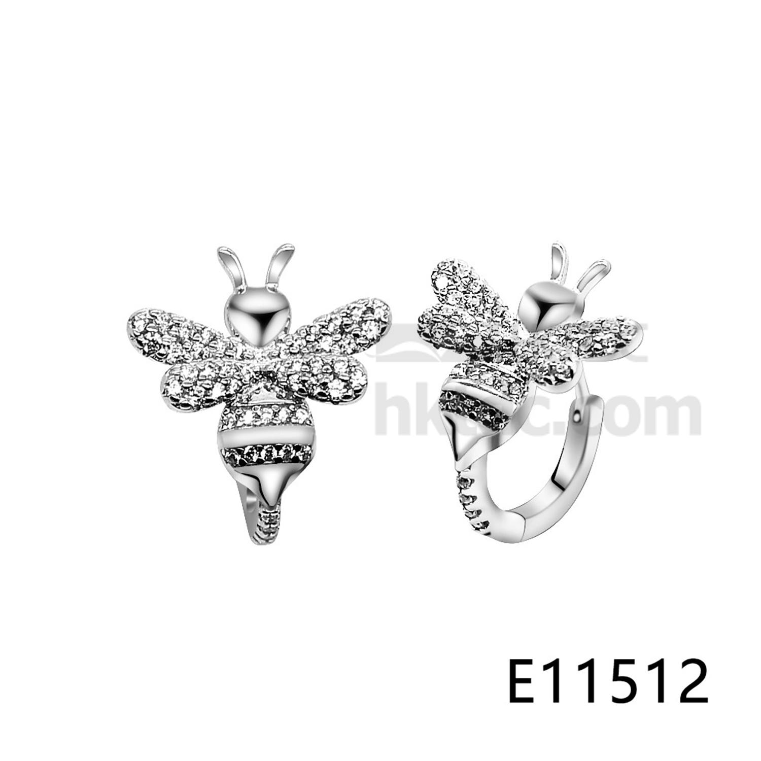 Lovely Bee Hoop Earring Sterling Silver CZ Earring