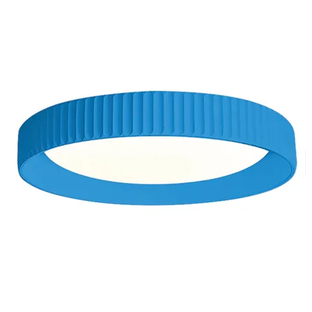 This is a circular ceiling light. The edge of the lamp body is a bright blue color, with vertical concave - convex stripes on the surface, giving it a three - dimensional feel. The central light - emitting area is white, emitting soft and bright light. With a simple and stylish shape and a fresh color, it is suitable for installation in children's rooms, adding a lively atmosphere to the space.