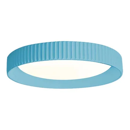 This is a circular ceiling light. The edge of the lamp body is in a fresh light blue color, with vertical concave - convex stripes on the surface, which are full of texture and three - dimensional sense. The central light - emitting area emits soft and bright light, and the overall shape is simple and stylish. This light blue tone gives people a sense of tranquility and refreshment. It is suitable for installation in a bedroom, creating a comfortable and relaxing sleeping environment. It can also be used in a study, helping people maintain a calm state of mind while reading and working.