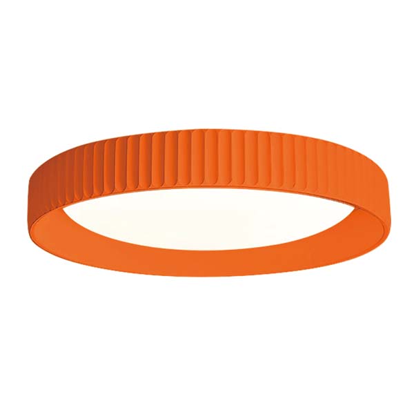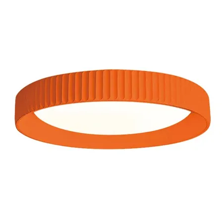 This is a circular ceiling light. The edge of the lamp body is in a bright orange color, with vertical concave - convex textures, giving it a strong three - dimensional effect. The central light - emitting area emits soft and bright white light, bringing a warm and energetic feeling. With a simple design and vivid color, it is suitable for installation in a children's room, which can stimulate children's imagination and creativity. It can also be used in a dining room to add a warm and cheerful atmosphere to the dining environment.