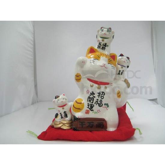 Lucky Cat Money Bank with 3 Mini Cat & Red Pillow