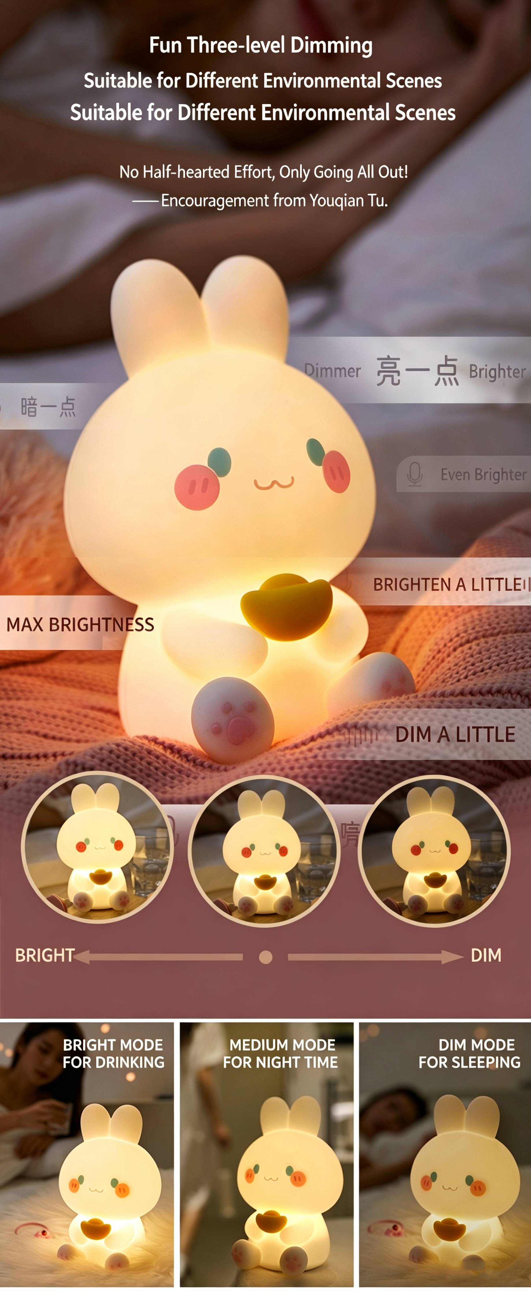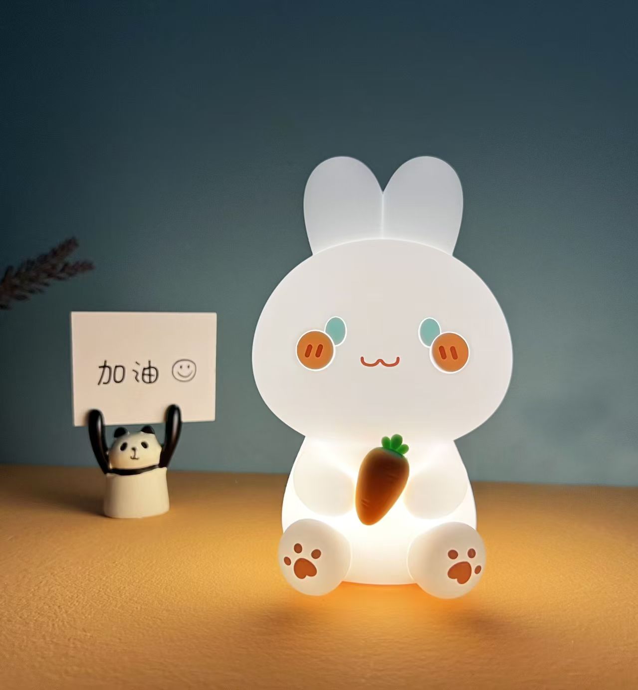 Lucky Rabbit Silicone Night Light, Cartoon Silicone Ambient Lamp, Dimmable Bedside Sleep Light, Perfect Gift for Kids, Tap Control