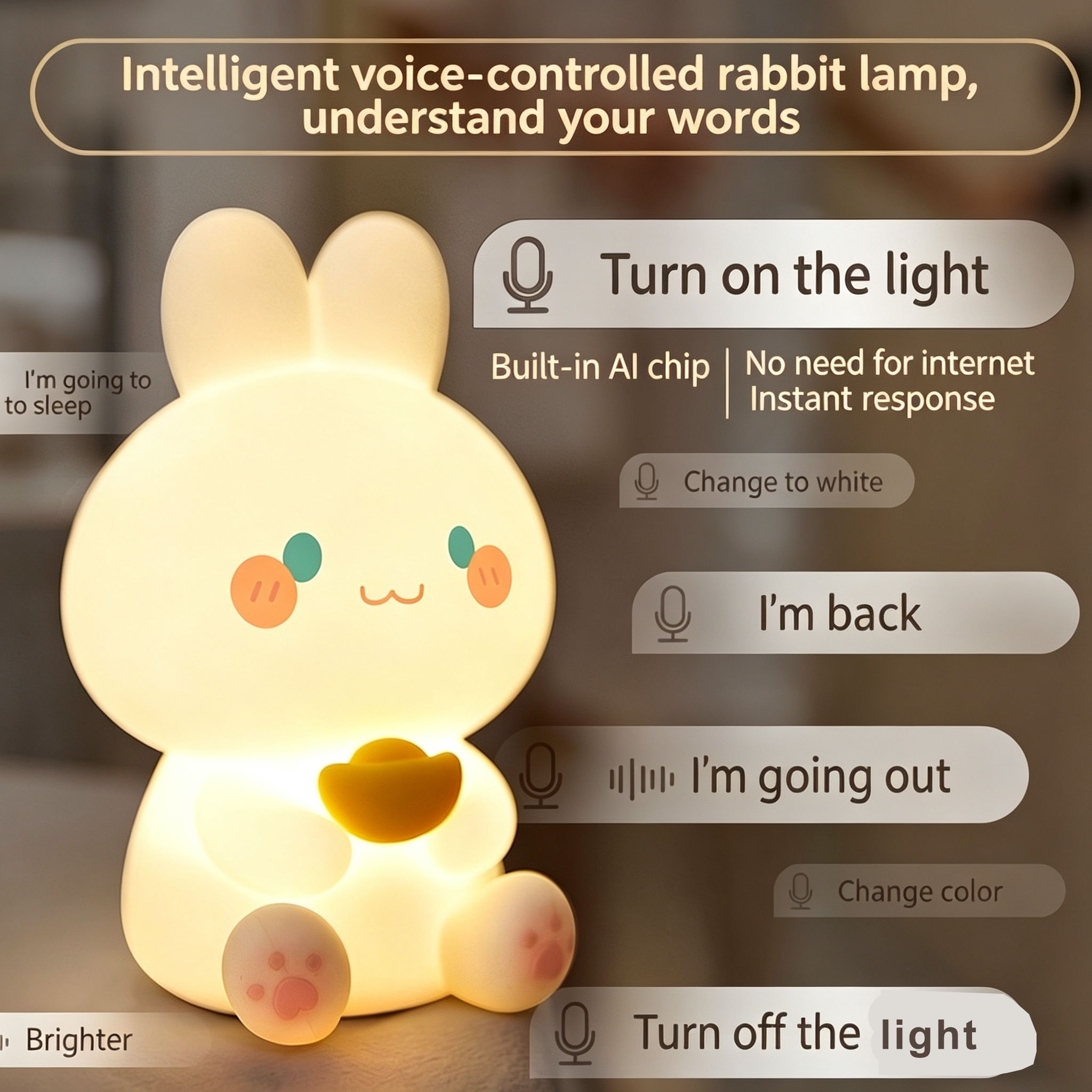 1. Hands-Free Voice Control: Built-in offline AI chip, no internet required! Just say "Turn on the light" to activate. Supports dimming, color changing, and mode switching, easy for kids and seniors to use.
