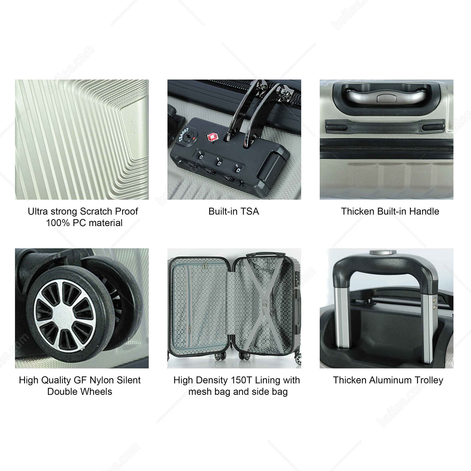 The wheels of extraordinary maneuverability are made of Glass Fiber Nylon Material instead of the regular PP or ABS material, the feature of Glass Fiber Nylon is anti-abrasion, heat-resistant, impact-resistant. Please be aware that the wheels are the most risky parts of a luggage, but with these Glass Fiber Nylon material wheels produced in our own factory, you can rest assure in all your international trips.