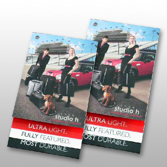This hang tag comes in a foldable rectangular design and offers ample space for printing artwork and product information. It has a hole at the corner for attaching to strings and is great for luggage use. The hangtag is an excellent choice for promotion and can make your products stand out from the rest.