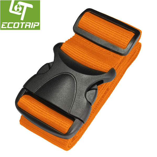 The displayed luggage strap is made of PP/polyester and has a durable quick release or combination lock buckle to secure the strap to your luggage. It cinches around your suitcase to keep it shut and comes in a bright color to help you spot your luggage in crowded baggage areas. This adjustable luggage strap is designed to fit all suitcases and is excellent for travelling use.