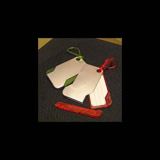 • This luggage tag is composed of a plastic board with sticker, a metal covering and a rubber band