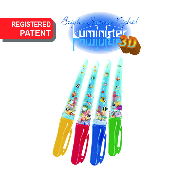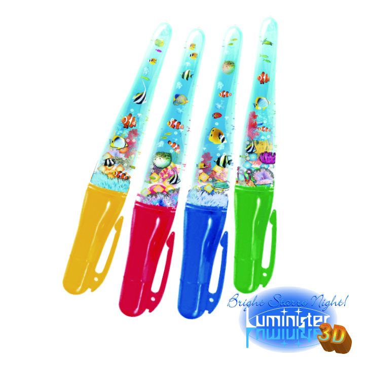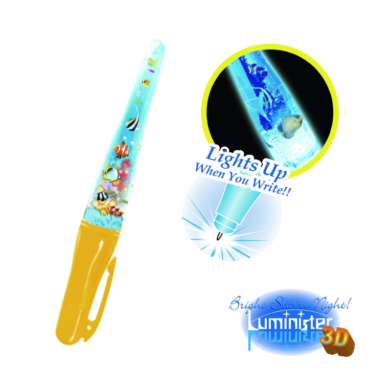 This mysterious look pen lights up when you write! Layered of illustrated films inserted and creates 3D effect.