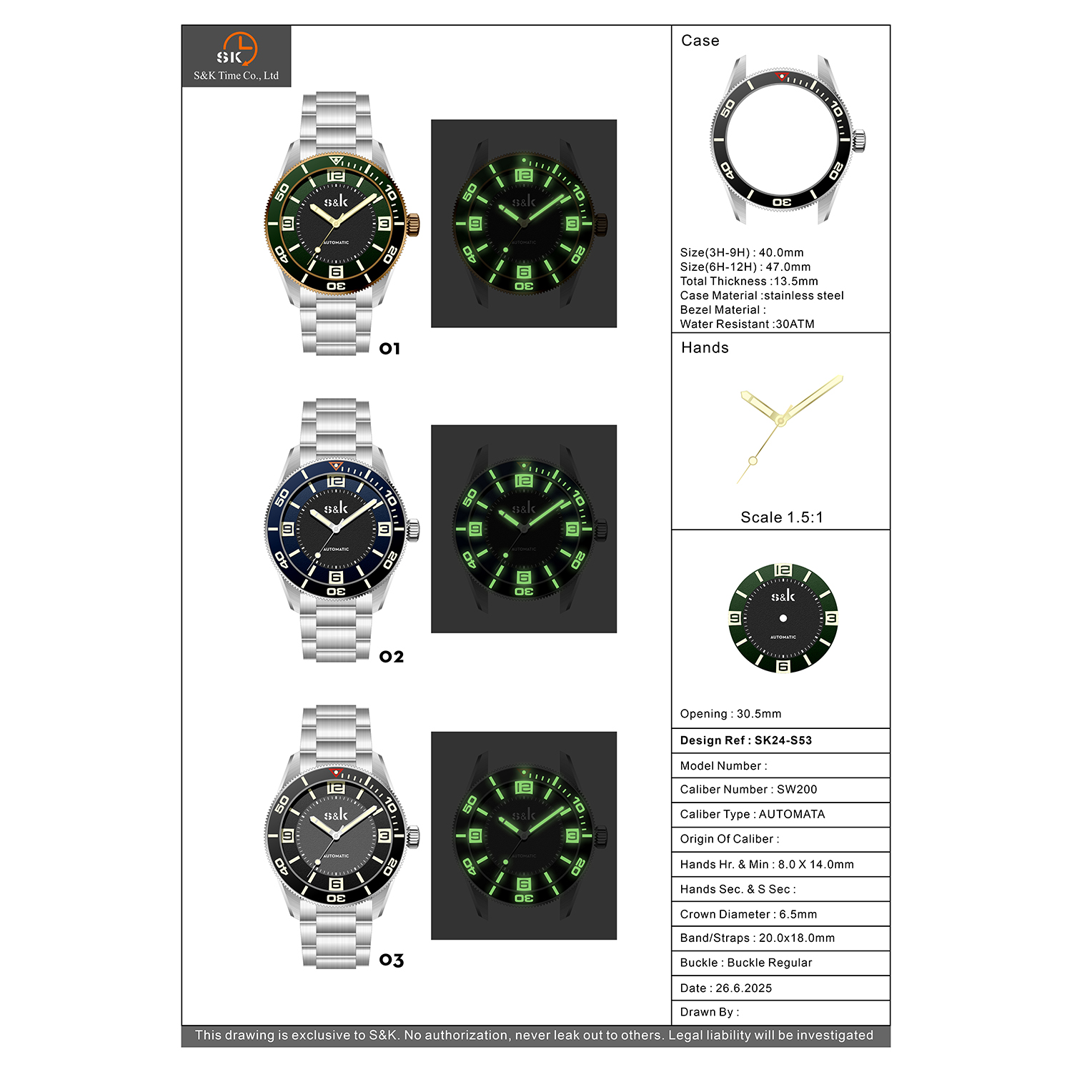 The Luminous Watch features a clean three-hand dial with high-contrast white-on-black numerals for exceptional daytime clarity. As night falls, Super-LumiNova C3 coating on the bezel, hands, and dial indices delivers powerful, long-lasting luminescence for unmatched visibility in the dark. Engineered for performance and durability, this watch is housed in a rugged 47mm stainless steel case with a unidirectional bezel with a sleek ceramic inlay.