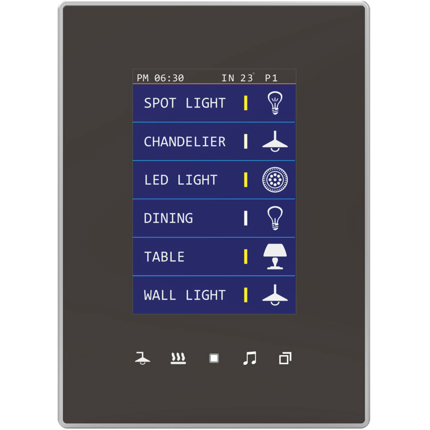 Luna series: It is a touch panel products designed to fit in any back box (US, UK, Europe standard) consist of 3 products including Luna-TB43C, Luna-TB-9G, and Luna-Bed-Side panels, all have to be connected to TIS Bus network for controlling lights, music, air-condition, motor and other appliances.