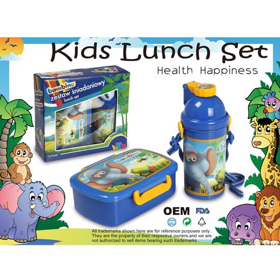 This kids’ lunch set comes with a lunch box and a water bottle. It is made of PP and AS for durability and sturdiness. The vivid animal prints attract kids’ attention instantly.