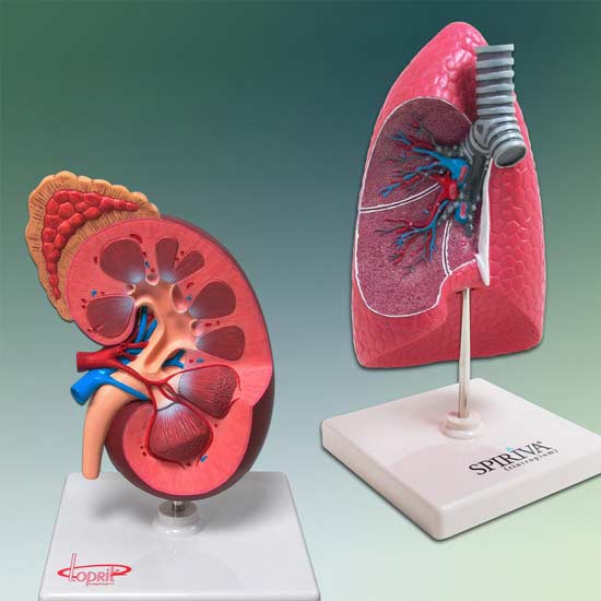 Displayed here is a lung model that shows the bronchus, arteries, veins, lymph node, bronchial passage and trachea bifurcation inside. The removable and realistic parts of this model are designed for hands-on learning.