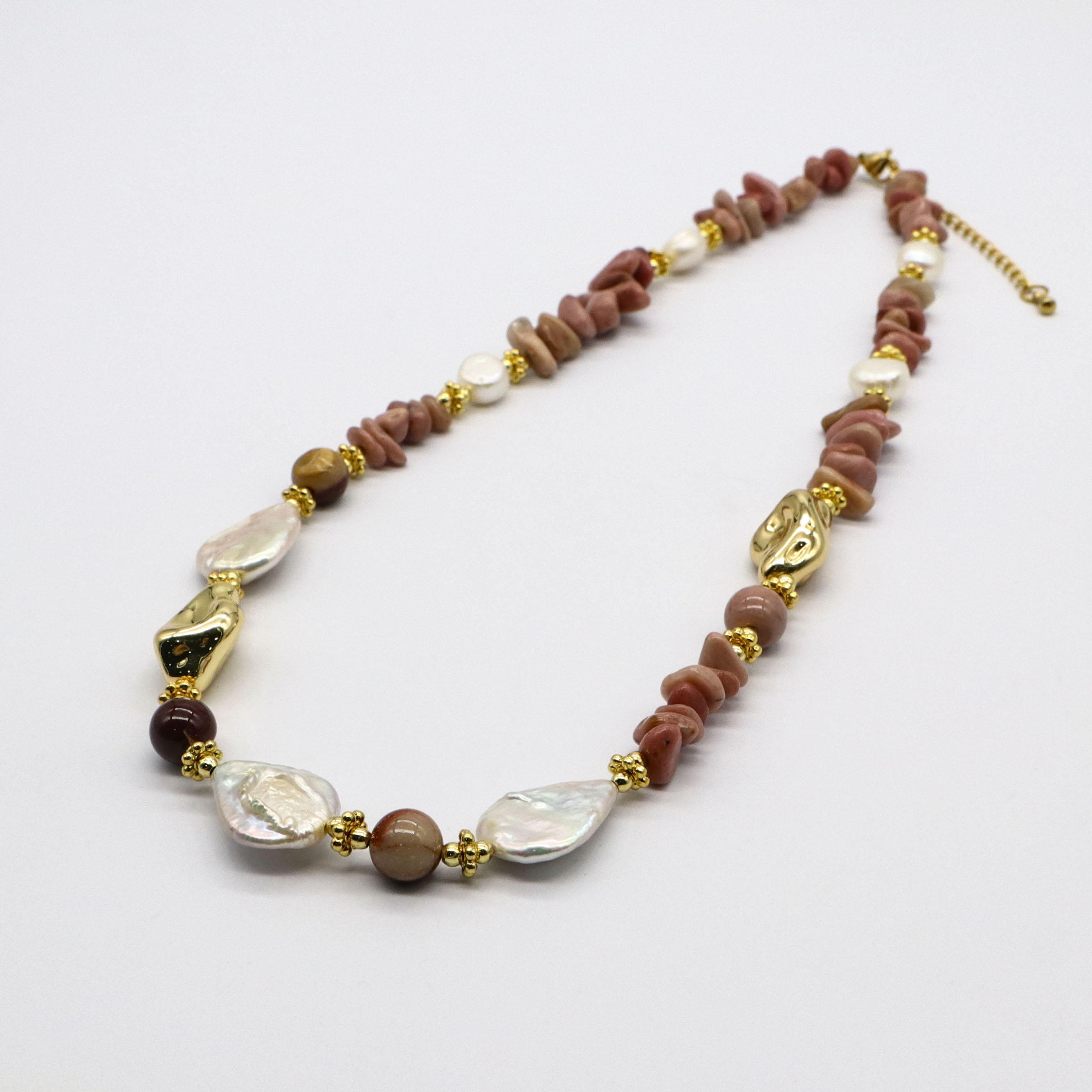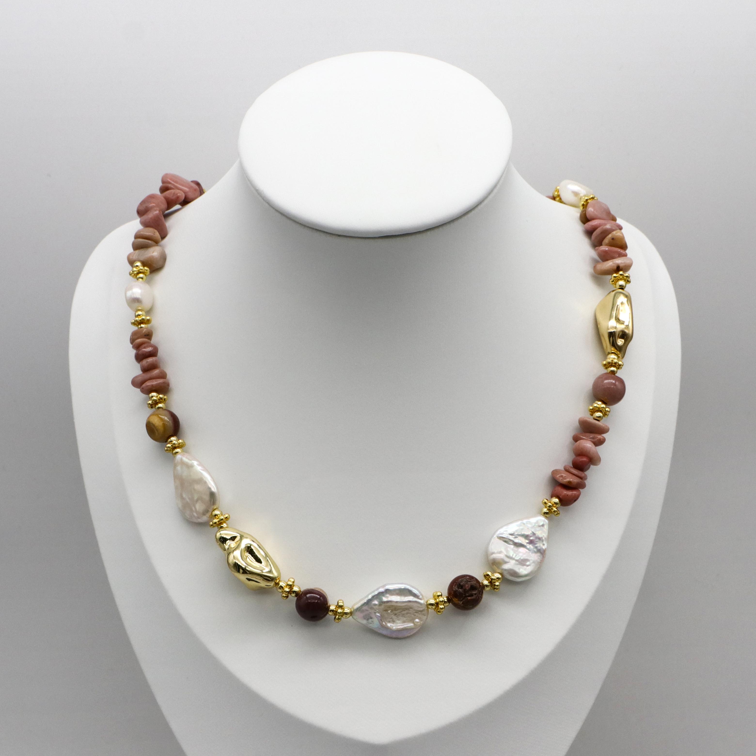 Material:14-18mm Natural Pearl,6-10mm Irregular Rhodonite