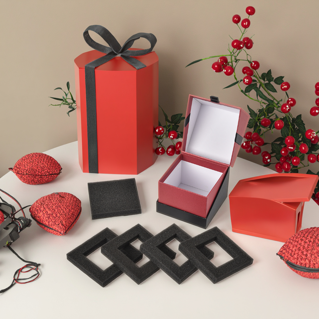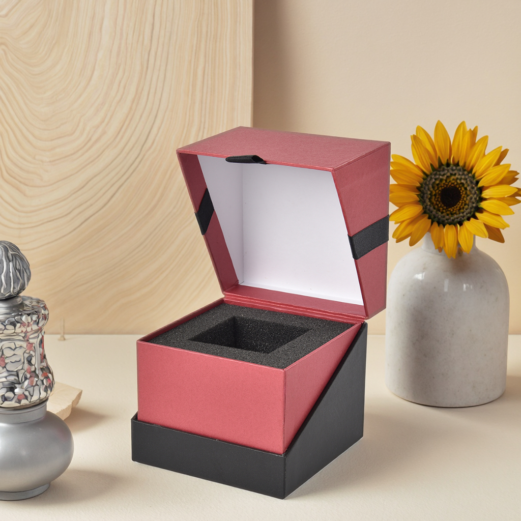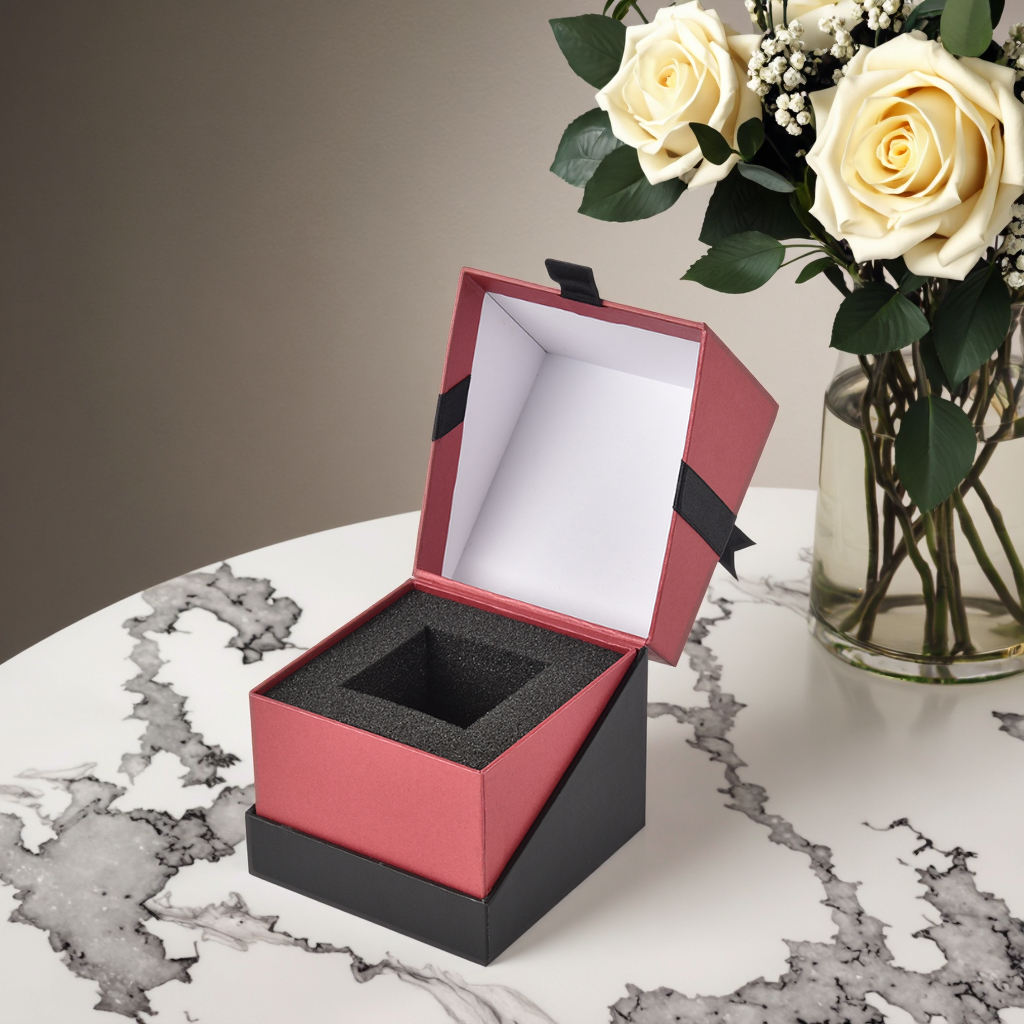 A luxurious square flip-top gift box, featuring a classic red and black color scheme with gilded patterns. The box contains a customizable sponge lining that can be taken out, specially designed for high-end cosmetics, jewelry and other exquisite gifts. The box body is made of thickened special materials, combining an elegant appearance with practical functions. It is the perfect choice to enhance the grade of gifts.