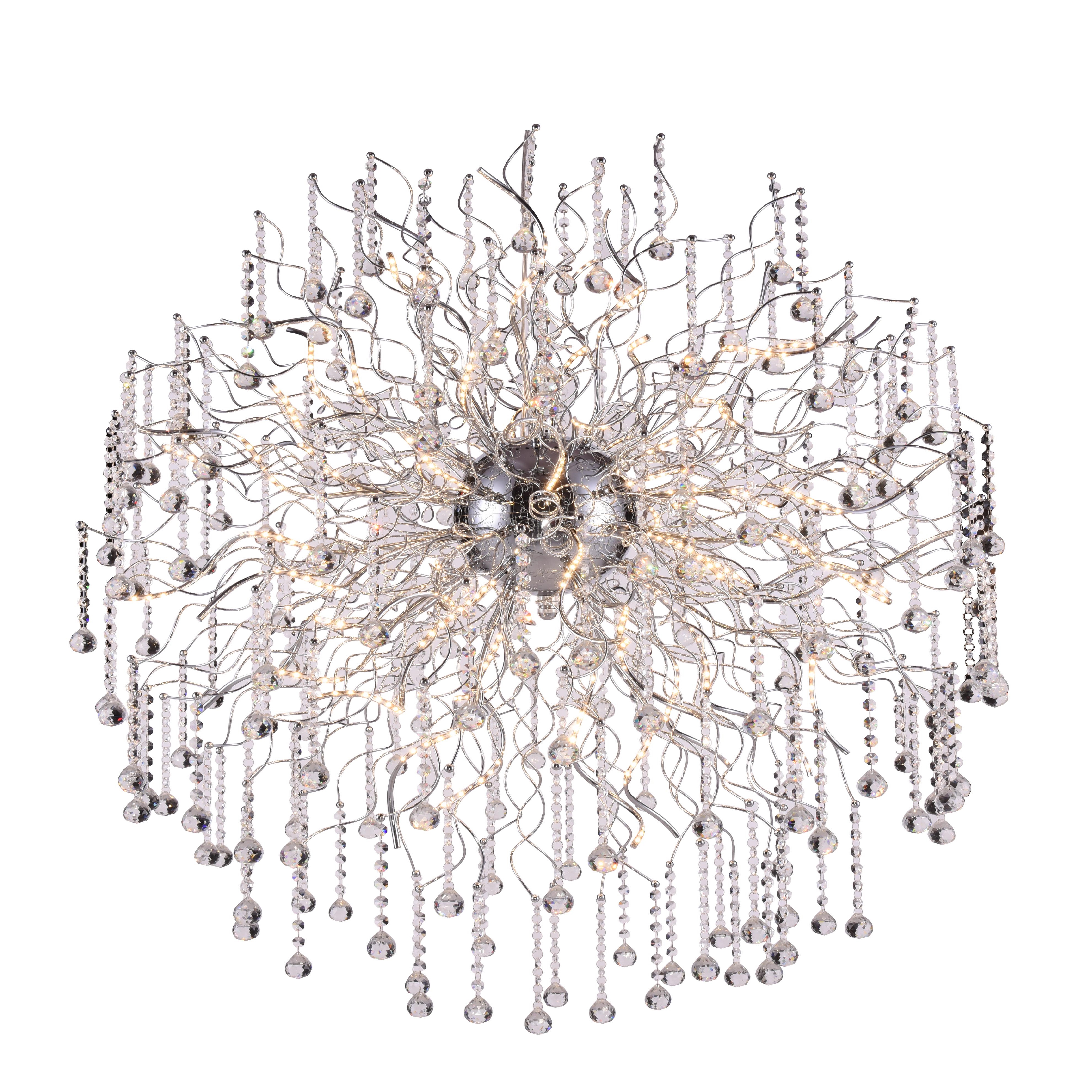 This exceptional piece is meticulously crafted with a gleaming chrome finish that ensures longevity and adds a contemporary touch to its traditional design. The chandelier is adorned with an exquisite array of crystal pendants that lend charming radiance and glamour of light to any room, creating a luxury ambiance. Embedded within this striking chandelier are energy-efficient LED lights. The sophisticated blend of classic elegance with energy-saving technology makes this luminary not only a stunning piece of décor but also a proficient, sustainable lighting solution.