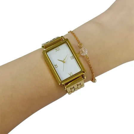 Luxury Gold Watch Roman Numerals Rectangle Shape Watch Jewelry Women Quartz Wrist Watches