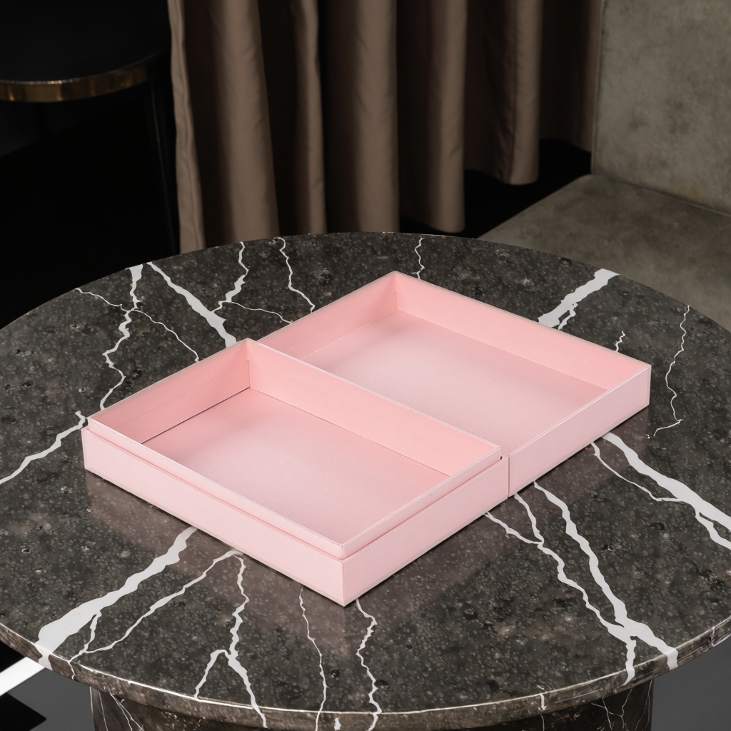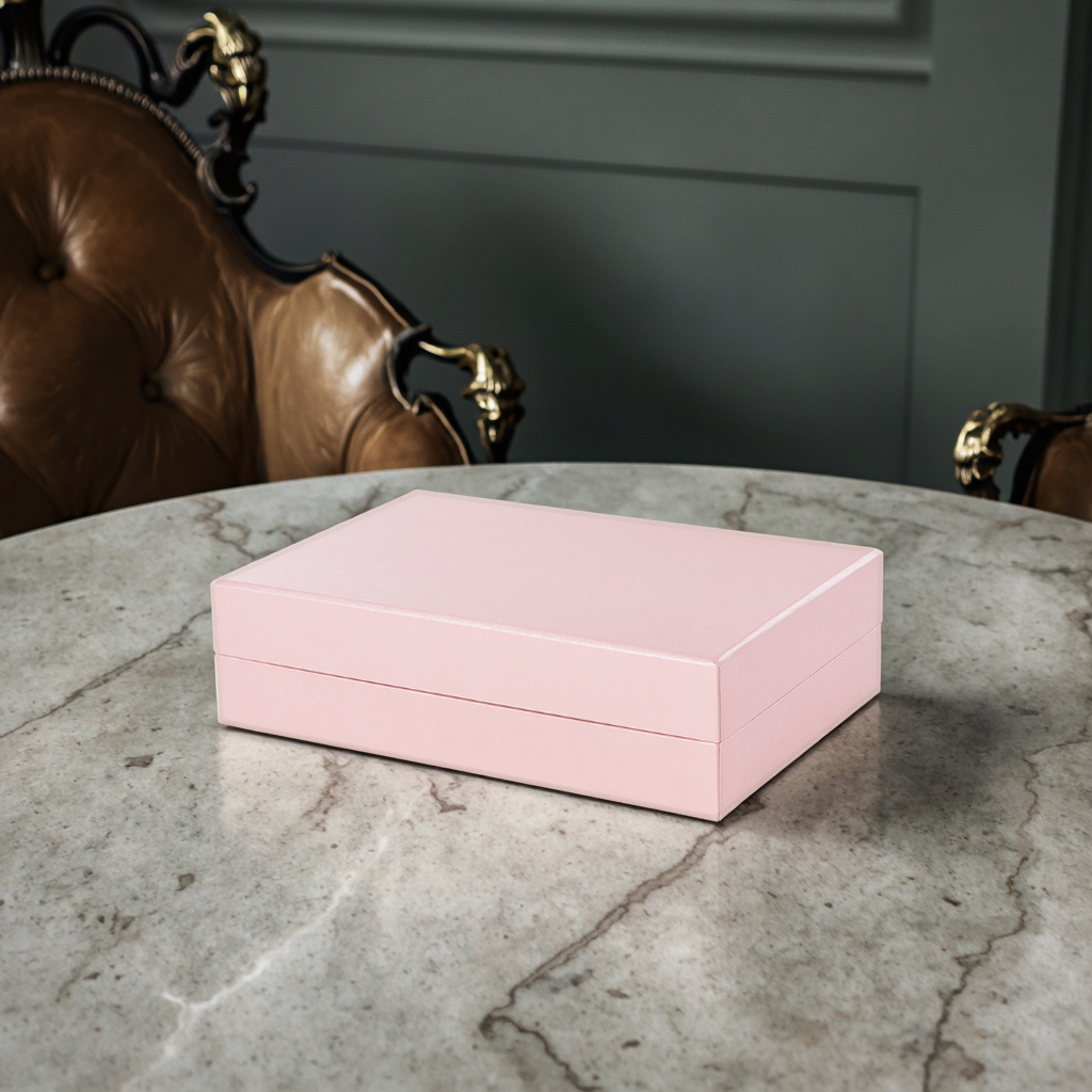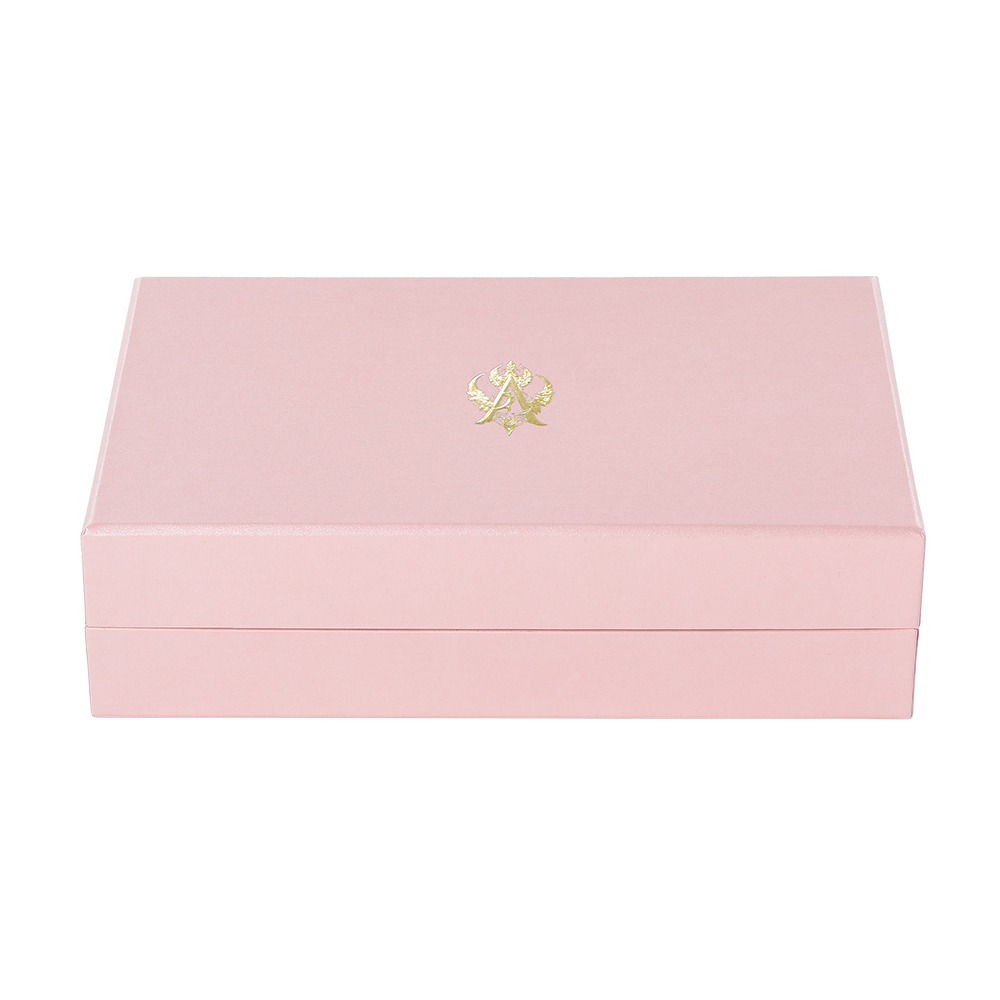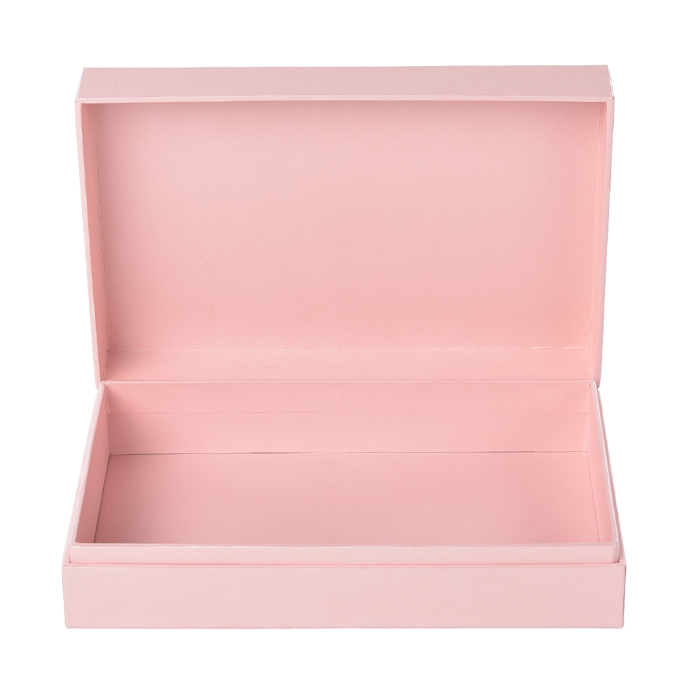 A luxurious flip-top gift box specially designed for high-end jewelry and luxury watches. It is precisely made of thickened special cardboard. Magnetic flap design. Built-in custom inner lining for perfect protection of valuable items. The sample is pink, exuding a light luxury charm and supporting all-round personalized customization.