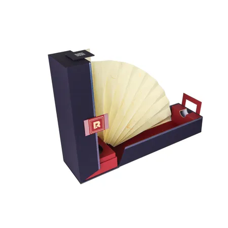 This wine box is sleek and elegant. Black with red accents, it's classic yet trendy. Inside, a fan - shaped beige lining protects the bottle. Smart compartments fit bottles and accessories. Ideal for high - end wines, it marries style and utility.