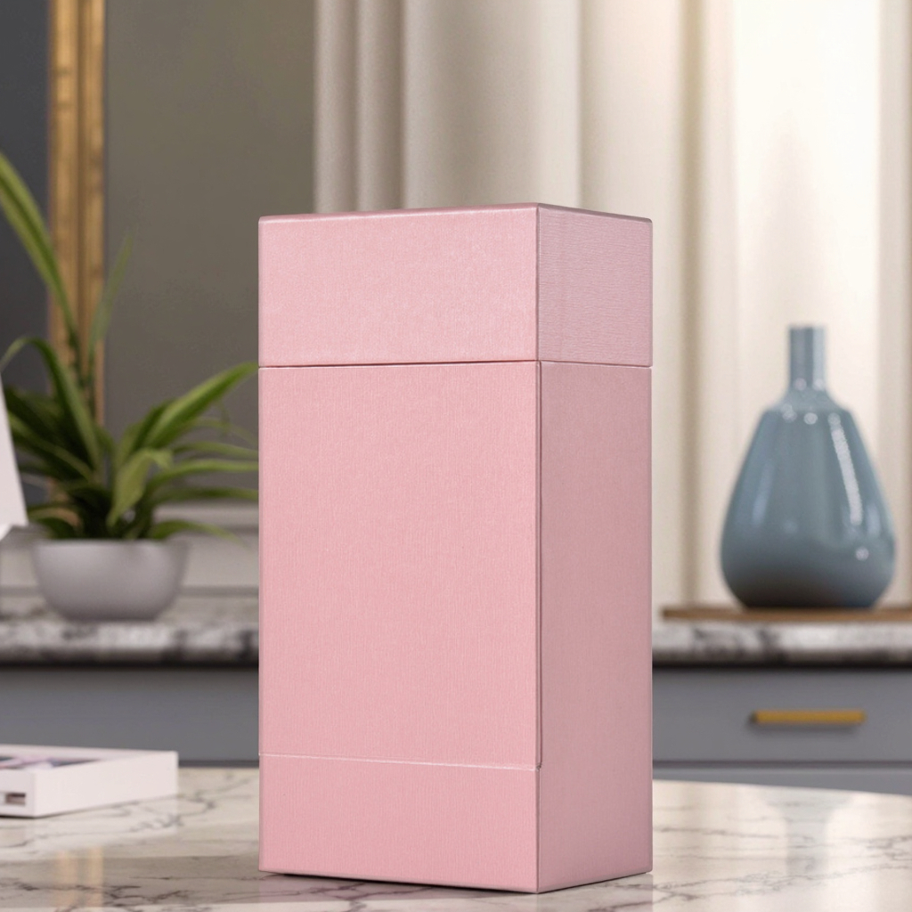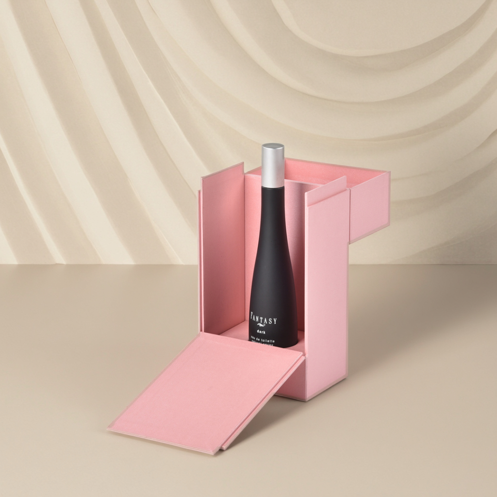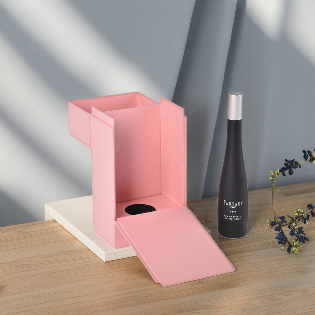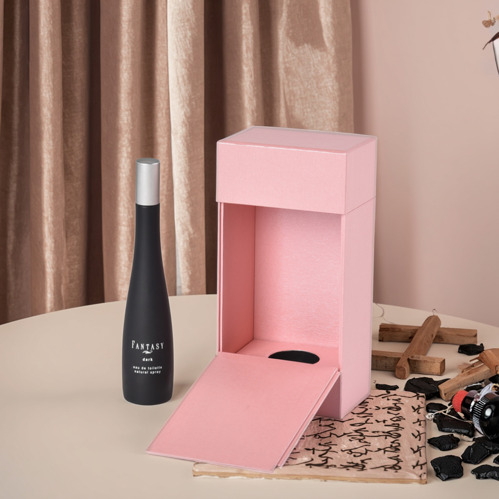 This perfume and cosmetics gift box is made of thick cardboard, which is sturdy and durable. The upper cover design is combined with magnetic closure, ensuring smooth opening and closing and a stable fit. The interior can be customized with fixed grooves according to the size of the items to prevent shaking and bumping. The sample is mainly in a gentle pink color, simple and elegant. Supports all-round customization. The exterior can be hot-stamped with exclusive logos. The color, ribbon, pattern, material and size can all be flexibly adjusted to meet the packaging and storage needs of different perfumes and cosmetics, fully demonstrating an exquisite style.
