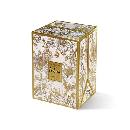 Easy opening, paper inlay, available for display. Cold foil all over print, hot stamped logo