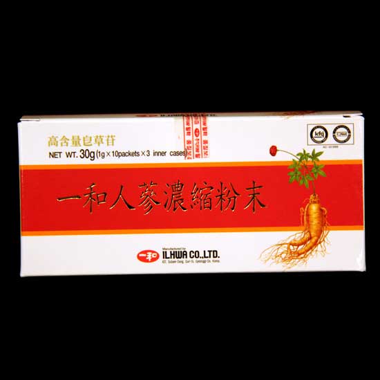 Highlighted is a pack of ginseng extract granule with 100% pure ginseng. Extracted with lyophilization technology, the nutrition of the ginseng is preserved. Continuous consumption of this ginseng extract can strengthen your health and bring rejuvenation effect.