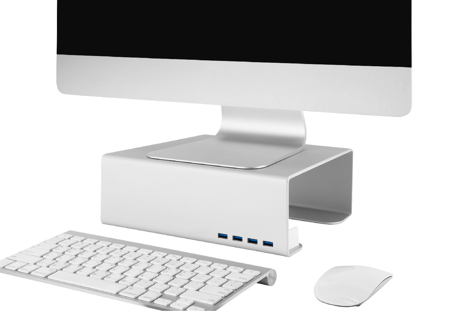 It has premium aluminum body& 4 ports USB3.0 and raises monitor screen height to eye level for better ergonomic. The unibody design provides solid stability and silver anodized finishing matches well with apple products, especially iMac