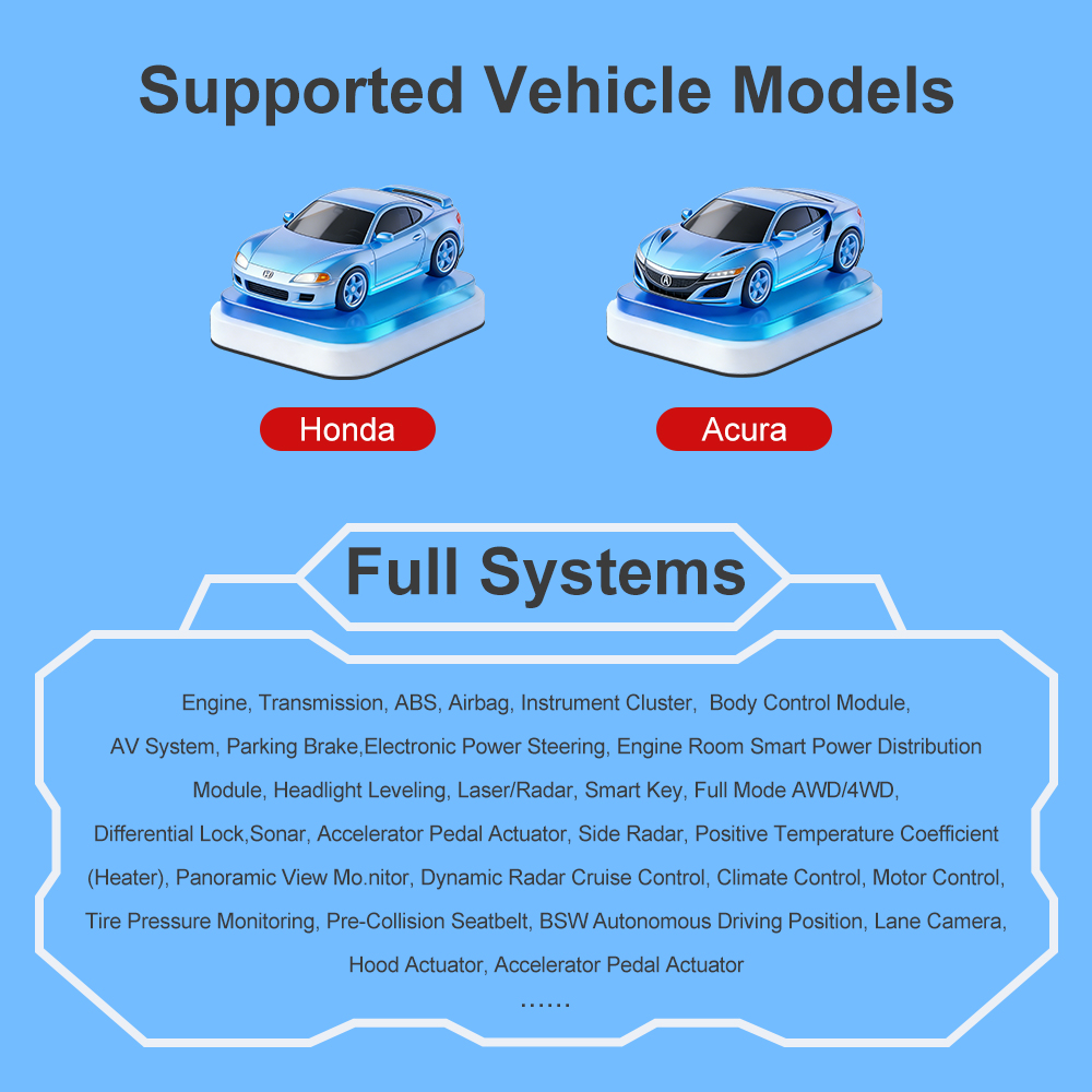 Currently the car brands that it supports full diagnosis: Honda, Acura