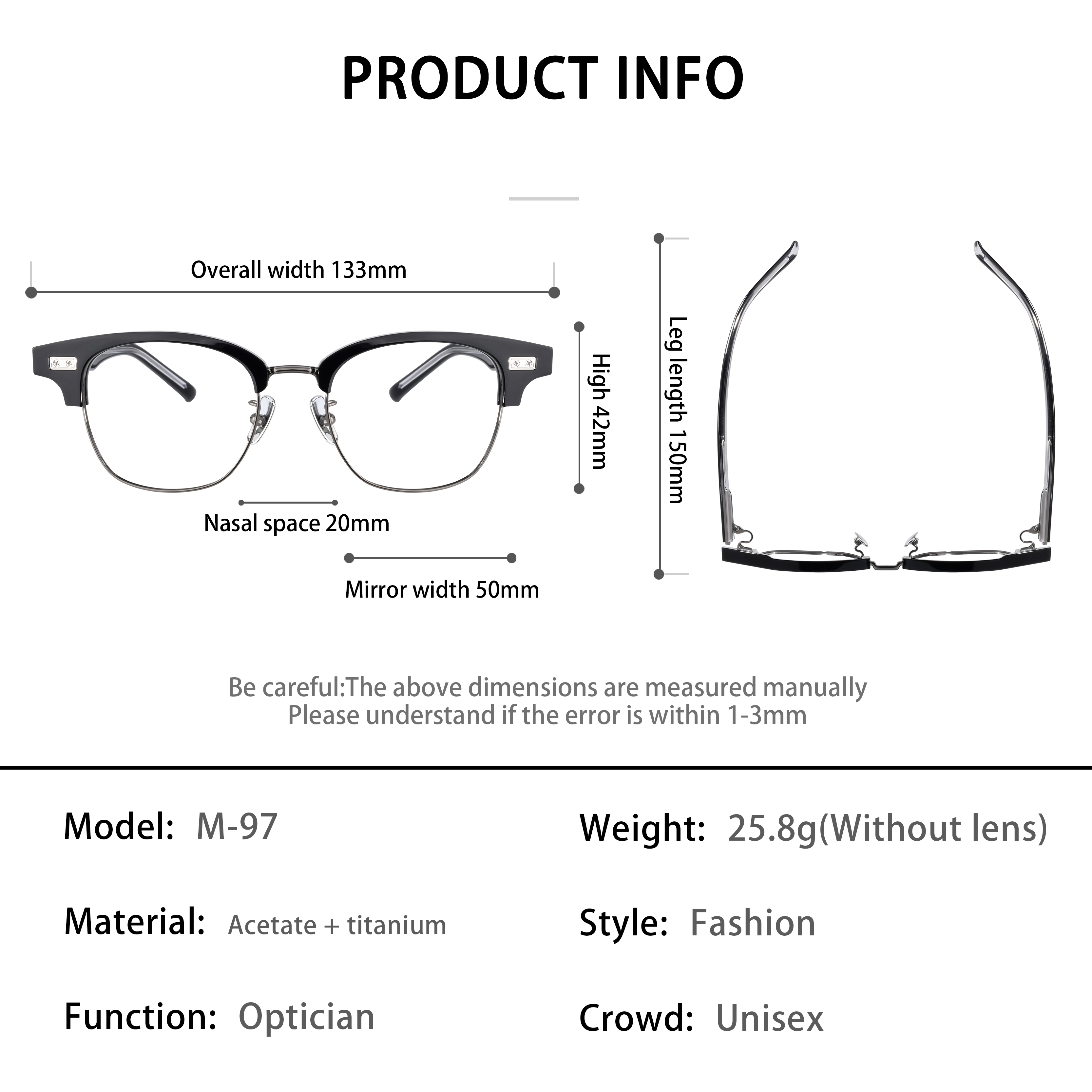 M97 Titanium and Acetate Eyebrow Classic Trendy Timeless Design Optical Eyeglasses Frame Unisex Eyeglasses Frame for Men Women