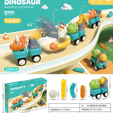 MAGNETIC BLOCKS DINOSAUR ENGINEERING VEHICLE SET (106 PCS)