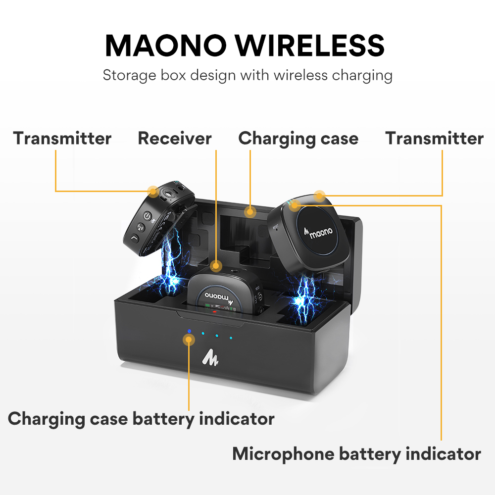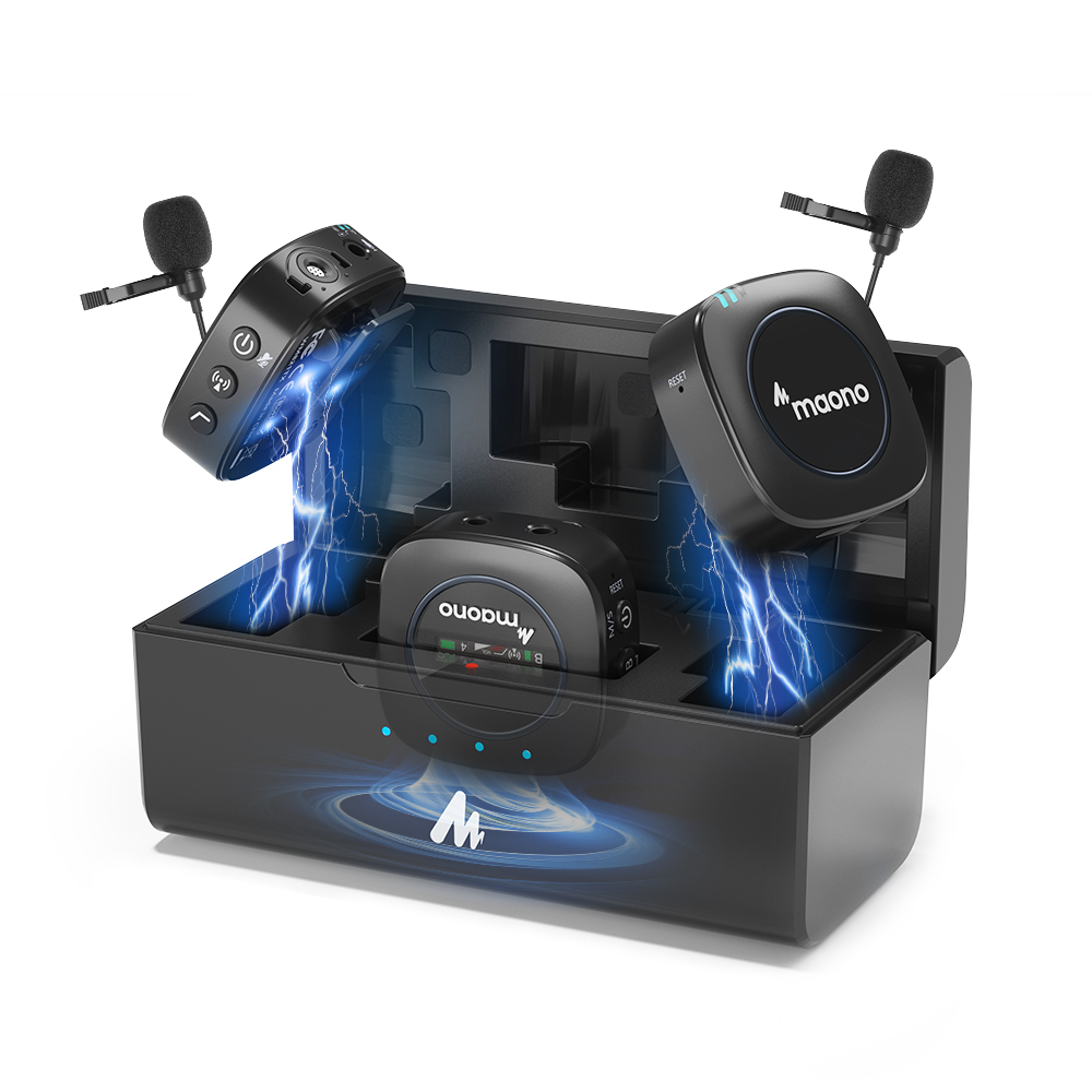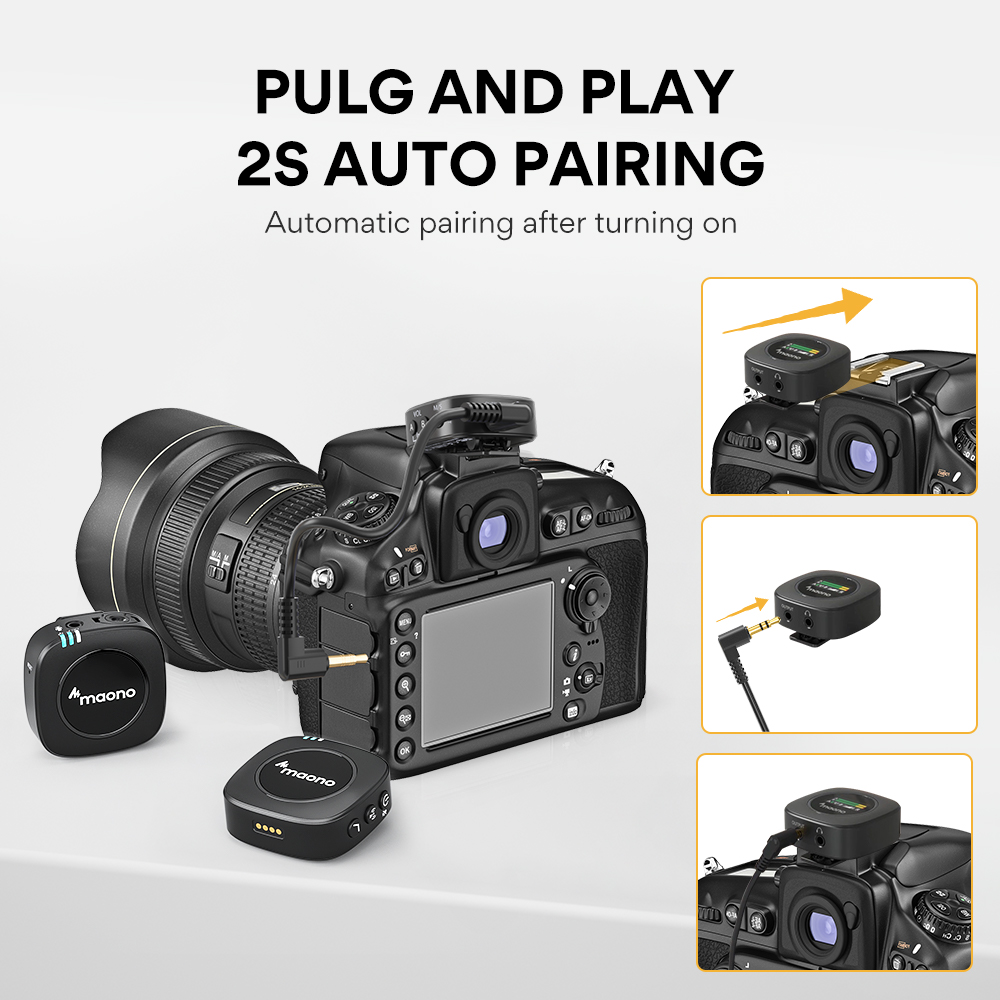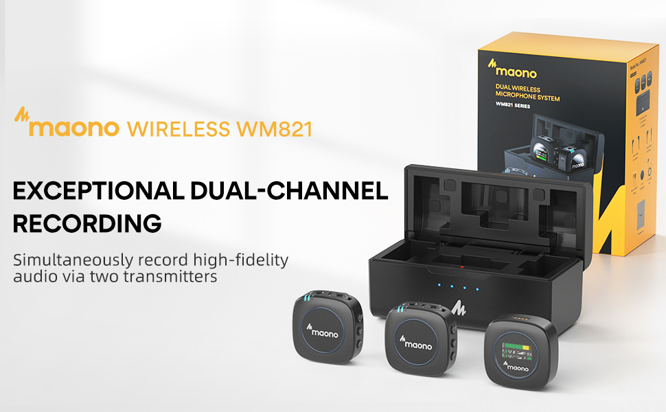 Delivers Clear and Natural Sound: Maono WM821 wireless mics use a high-class professional audio chip providing intelligent noise reduction, feature an in-built omnidirectional condenser capsule, and can be used as a clip-on mic or with Maono lavalier included, sending crystal-clear, broadcast-grade audio via 2.4GHz digital transmission to the receiver. The S/N(SIGNAL-NOISE RATIO) is 82dB(82db S/N Ratio). which is suitable for capturing every audio detail. When you start editing, it will be easier to filter out any hiss and other ambient noise