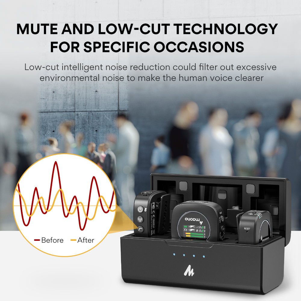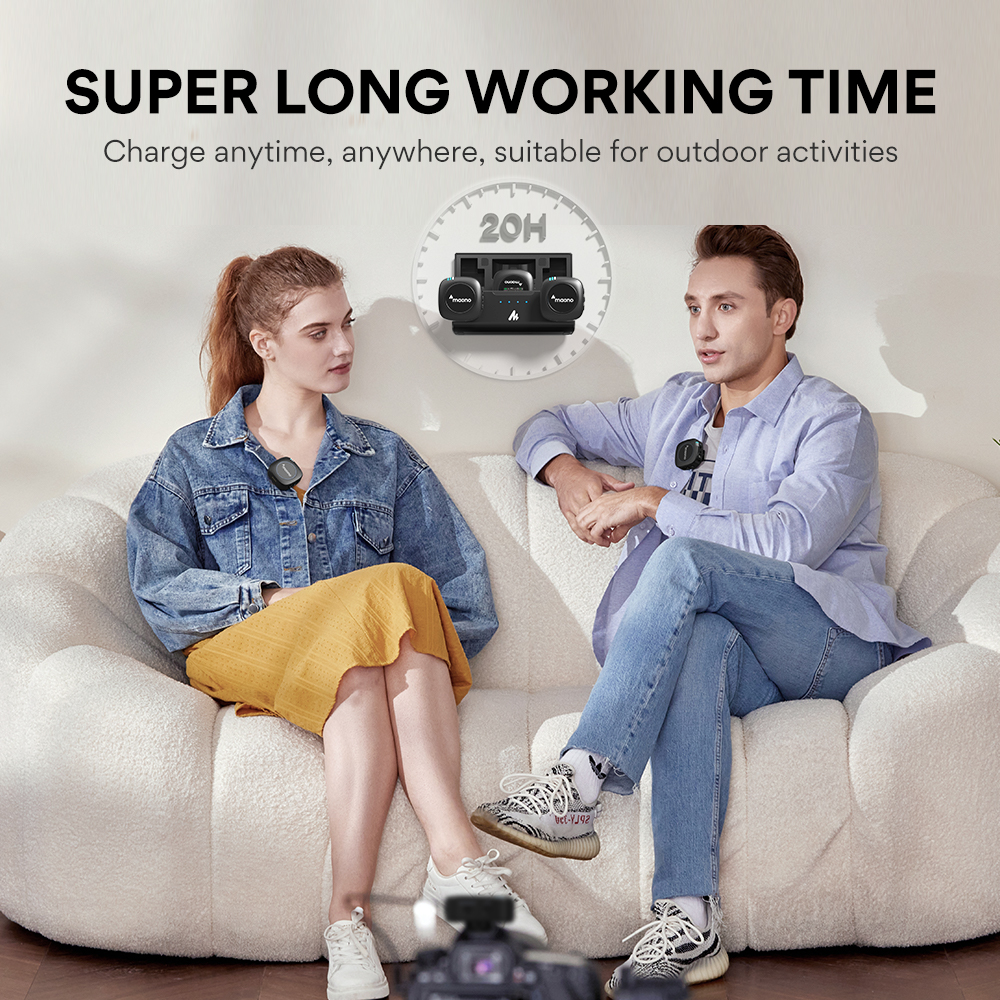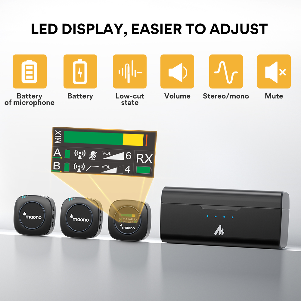 Delivers Clear and Natural Sound: Maono WM821 wireless mics use a high-class professional audio chip providing intelligent noise reduction, feature an in-built omnidirectional condenser capsule, and can be used as a clip-on mic or with Maono lavalier included, sending crystal-clear, broadcast-grade audio via 2.4GHz digital transmission to the receiver. The S/N(SIGNAL-NOISE RATIO) is 82dB(82db S/N Ratio). which is suitable for capturing every audio detail. When you start editing, it will be easier to filter out any hiss and other ambient noise