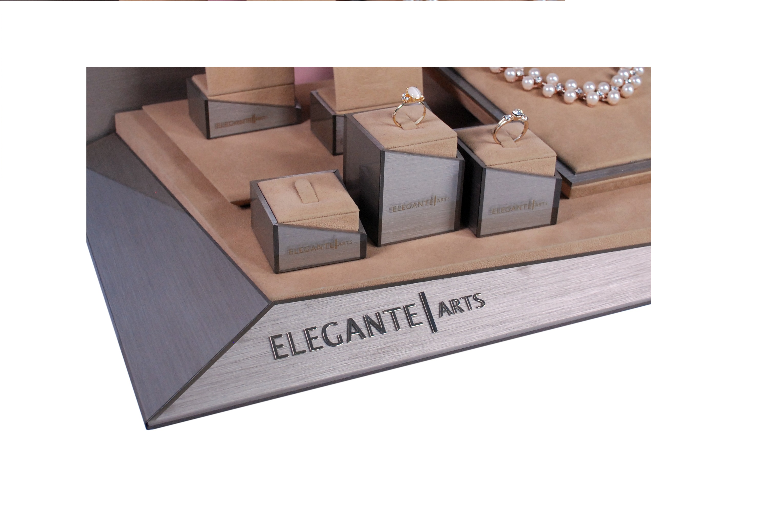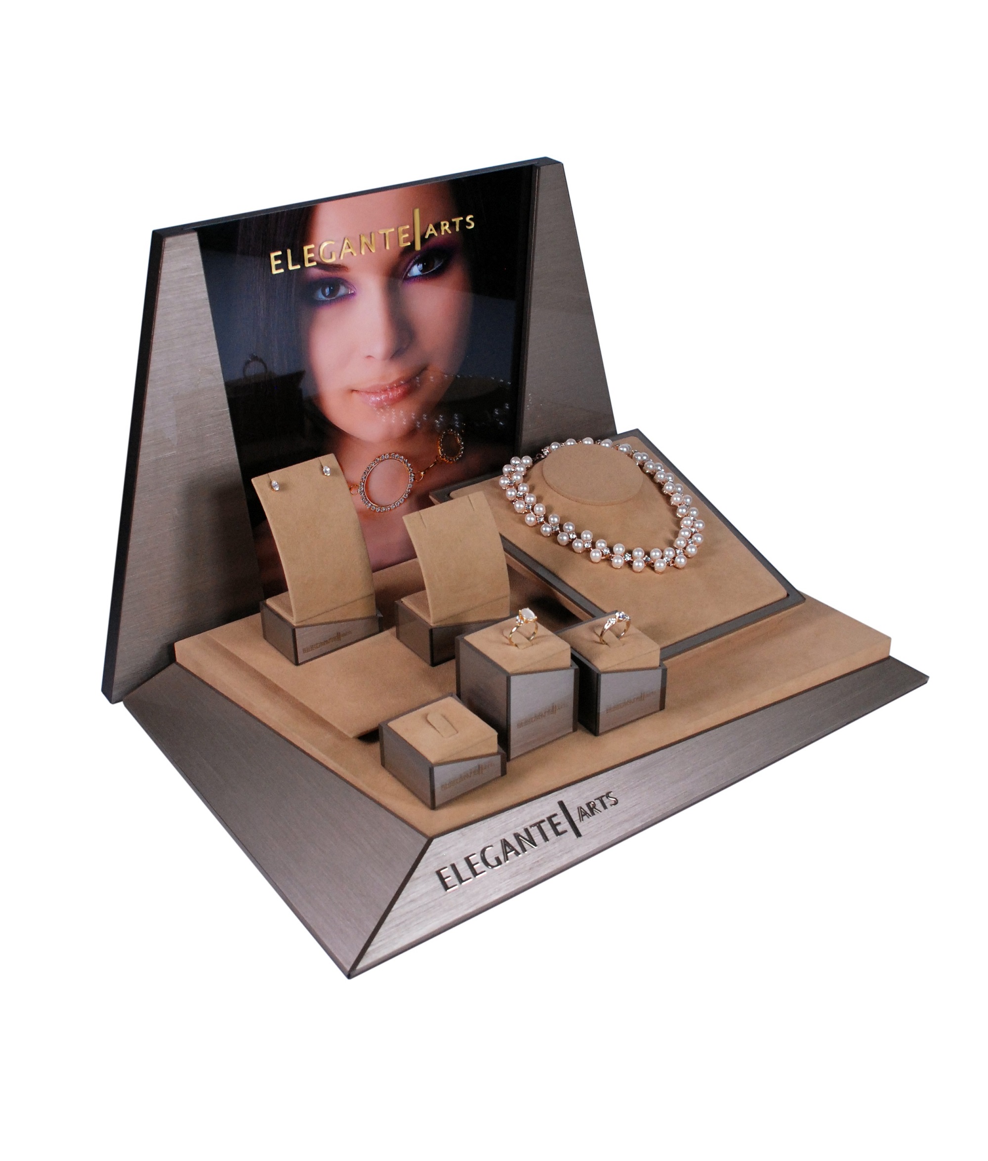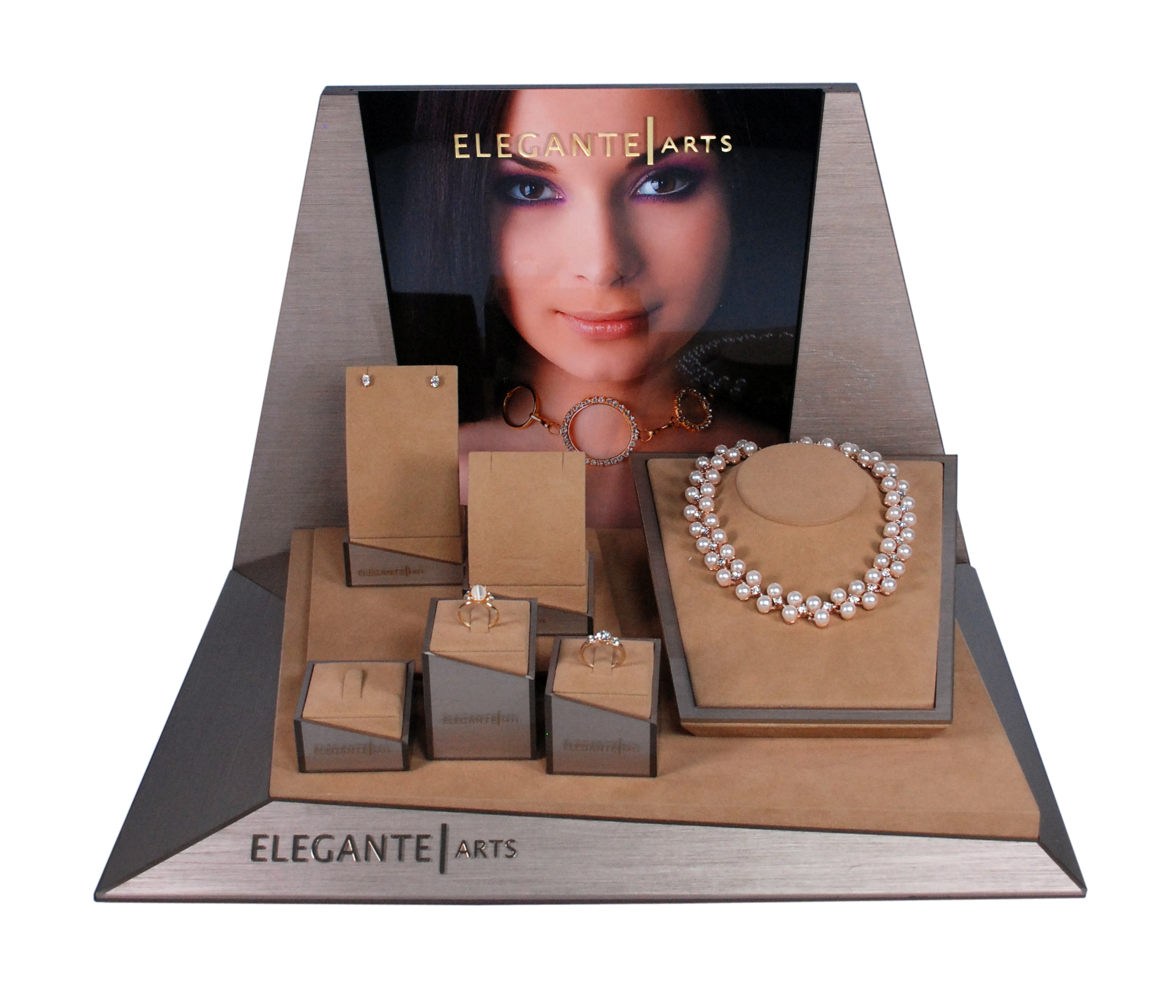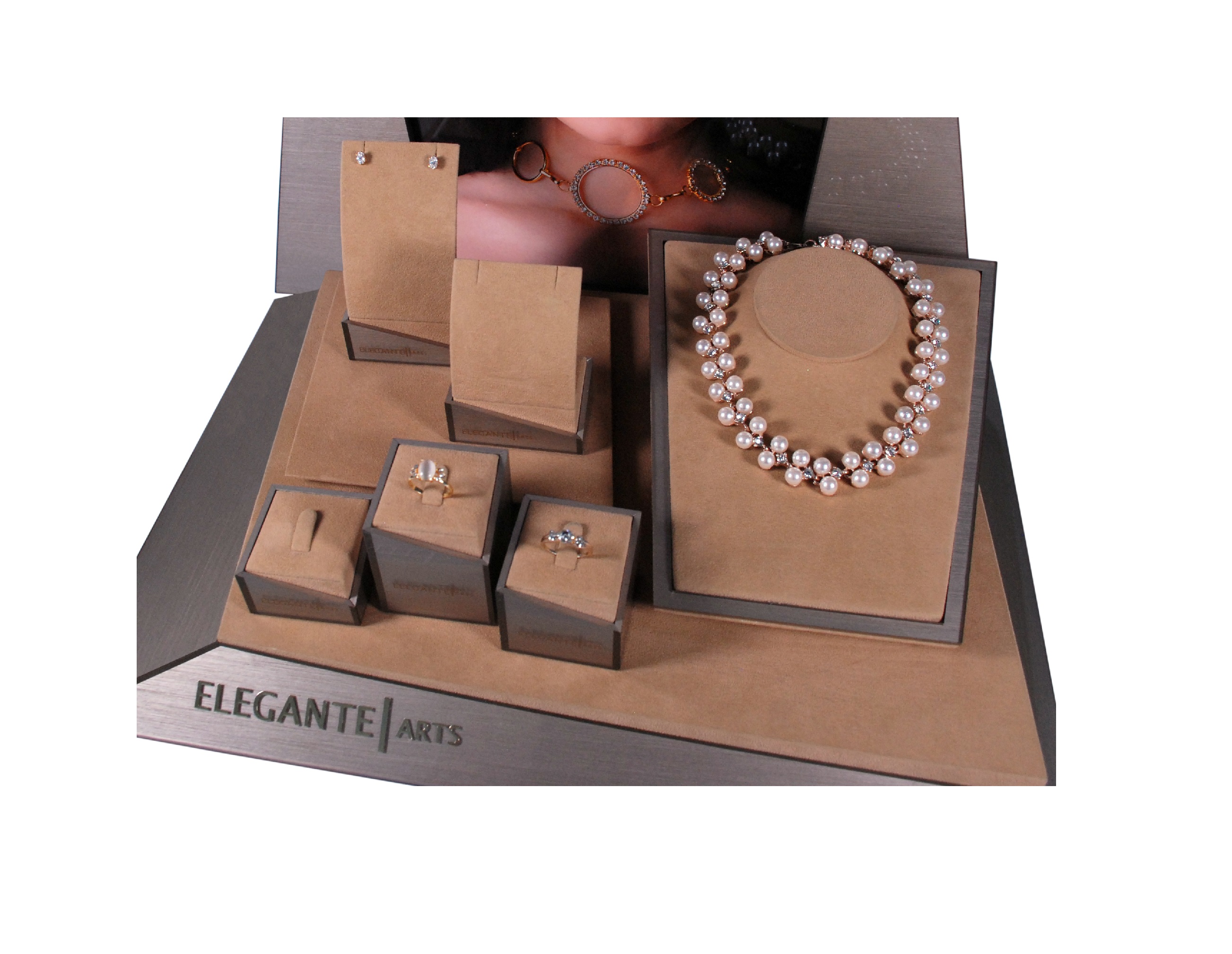 Display jewelry in a classy and elegant way with this jewelry displayer set. The set includes a necklace stand, two earring stands and three ring stands. It can make jewelry look more eye-catching and is great for attracting the attention of customers.