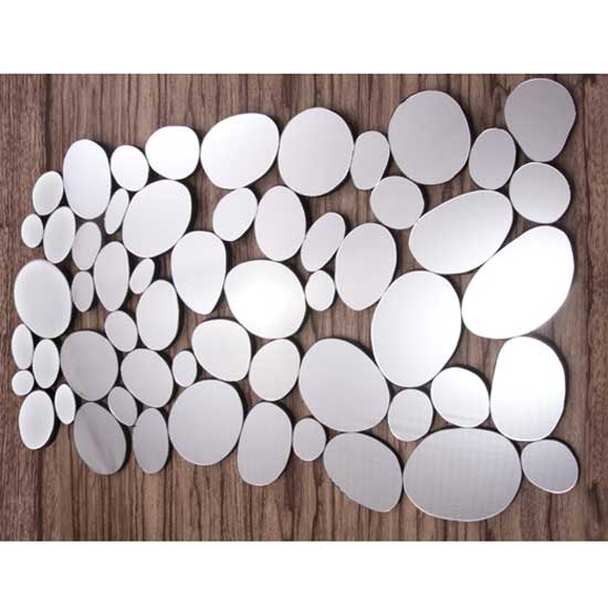 This decorative wall mirror presents small mirrors in assorted pebble shapes. The beautiful design resembles the light reflected by wet stones in the river. The bewildering and fresh decoration adds youthful vibe to your home.