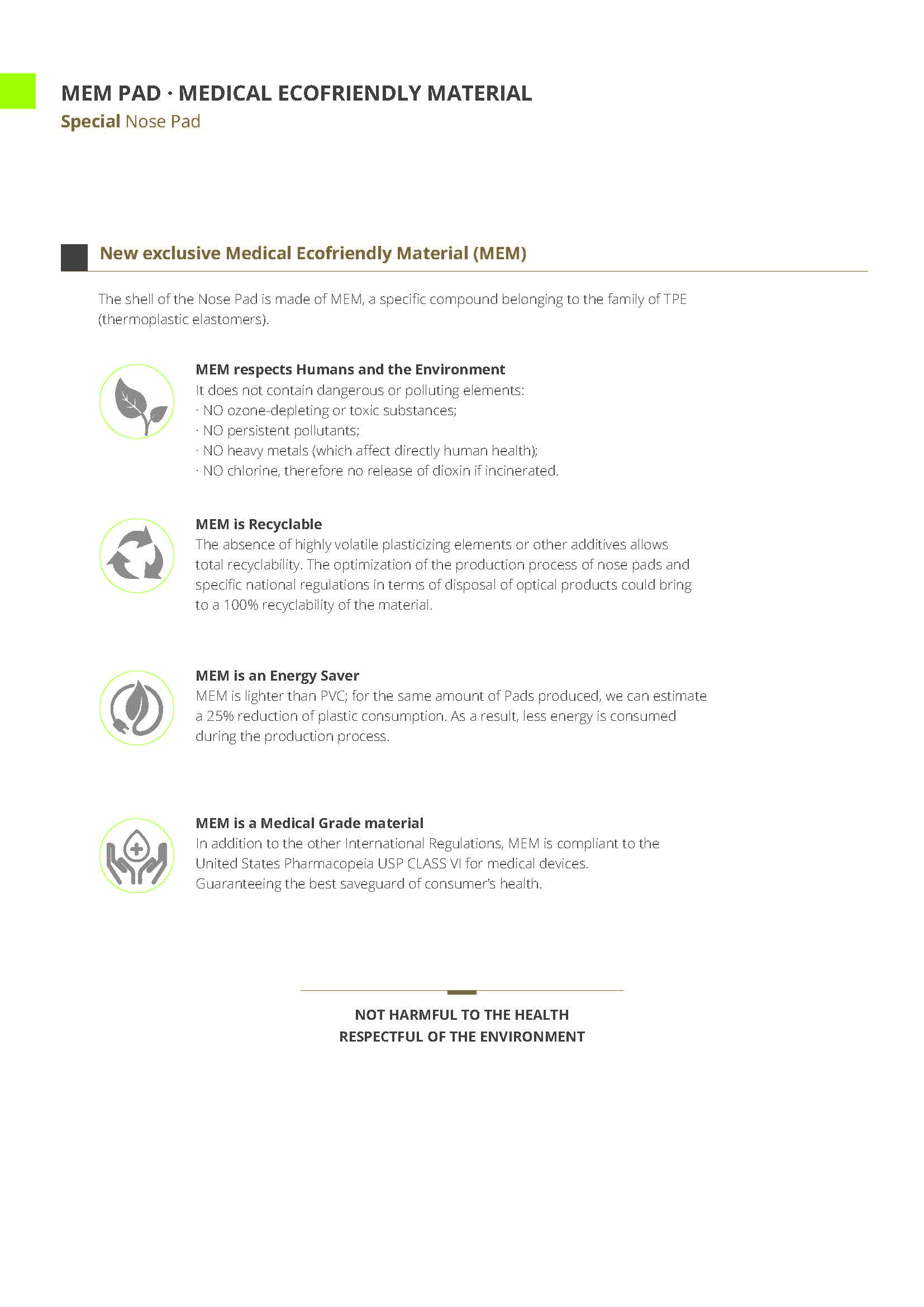 • SKIN FRIENDLY - MEM is a biocompatible material, therefore is safe for the health, even after a prolonged